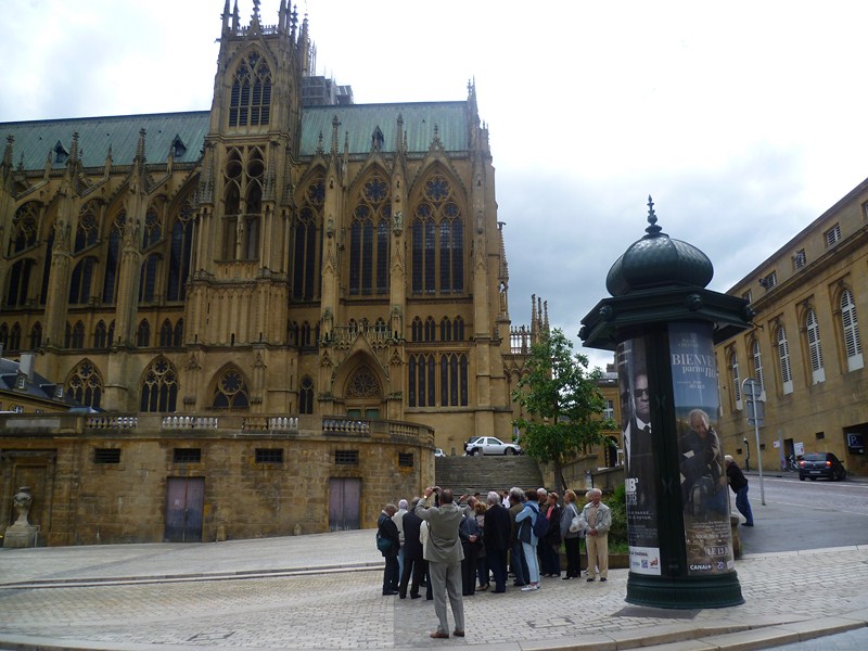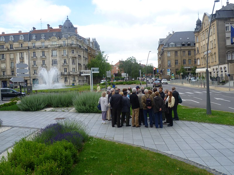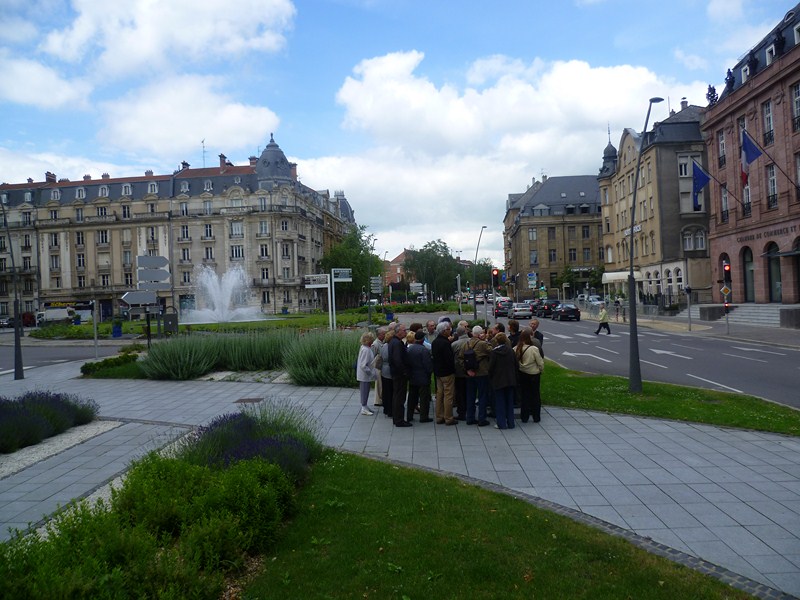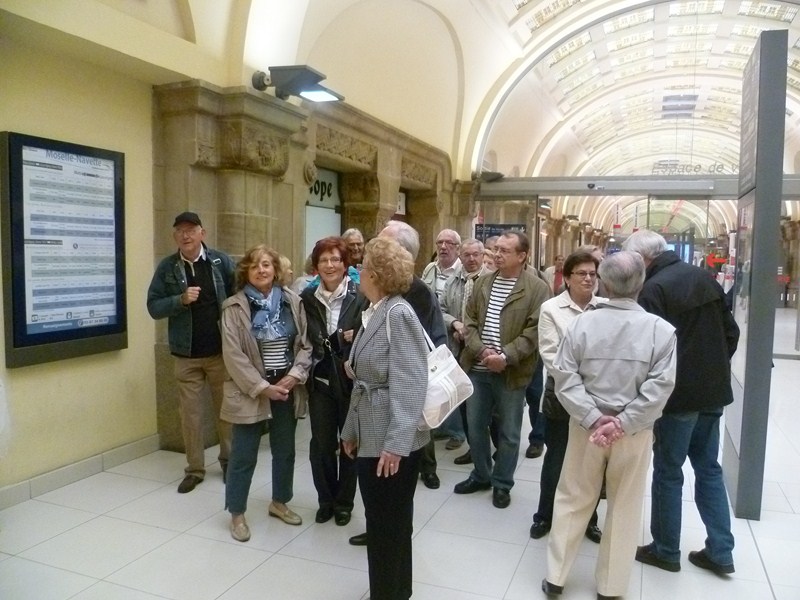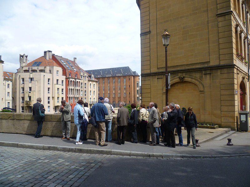 Grace à notre copain André, guide très émérite, cette visite du quartier impérial nous a permis de découvrir l’histoire de Metz sous un nouveau jour. En partant de la gare pour arriver Place Saint louis après être passé par la place Déroulède, la tour Camoufle, le monument aux morts, la porte Serpenoise, l’Arsenal, Saint Pierre aux Nonnains, l’Opéra Théâtre, et la magnifique Cathédrale Saint Etienne c’est l’épopée messine de la période romaine jusqu’au 19ème siècle que nous avons , même pour les messins pures souches, découverts. Pour ne rien gâter le soleil nous avait fait la grâce d’être présent. Et pour clôturer cette matinée un repas pris dans un restaurant au nom prédestiné le César.