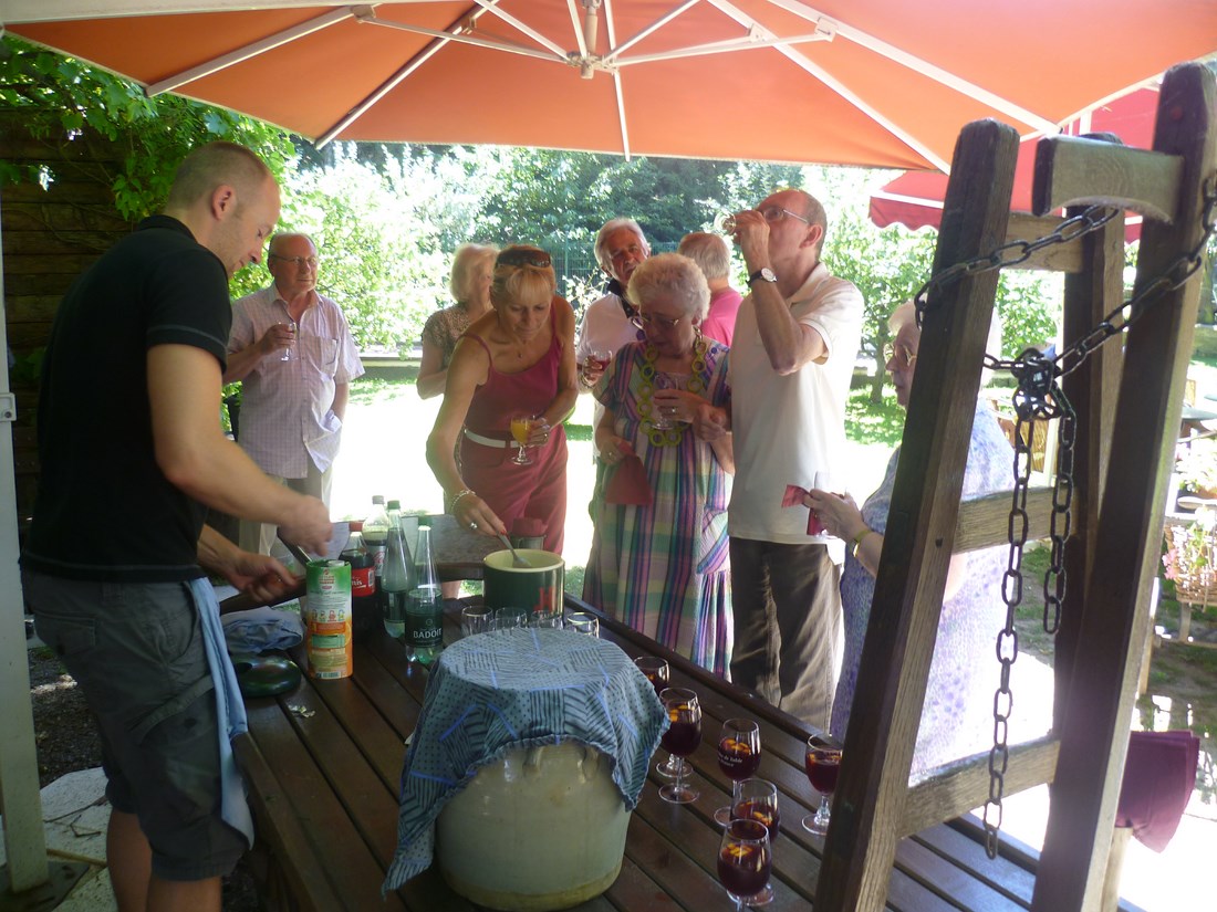 Pour un essai il est réussi. Programmant une activité en pleine période estivale nous craignions une participation réduite. Surprise, avec 48 participants notre barbecue annuel a connu sa plus forte affluence. La crise touche peut être les pauvres retraités BNPP qui ne peuvent plus partir en vacances. Pour le reste la météo sympa a attendu le milieu d'après-midi pour la canicule, le ciel rayonnant et le cochon et le vin comme d'habitude excellent et à volonté. Une expérience que nous renouvellerons probablement pour 2014.