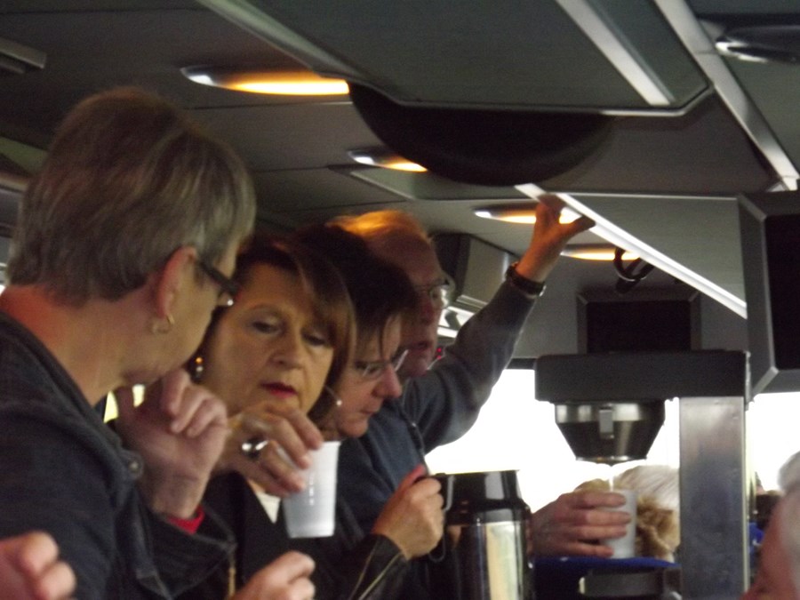 Exploit, miracle ou chance tout simplement! Par ces temps de météo pourrie nous n'avons pas eu besoin d'ouvrir nos parapluies durant toutes nos nombreuses visites programmées en Champagne. Le bus lui a bien été nettoyé durant le parcours bénéficiant même d'un orage de grêle au retour.