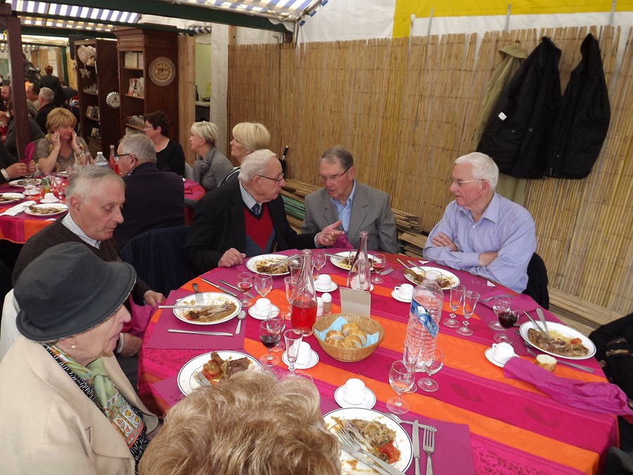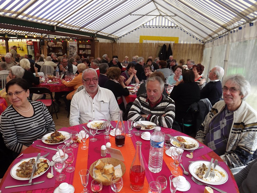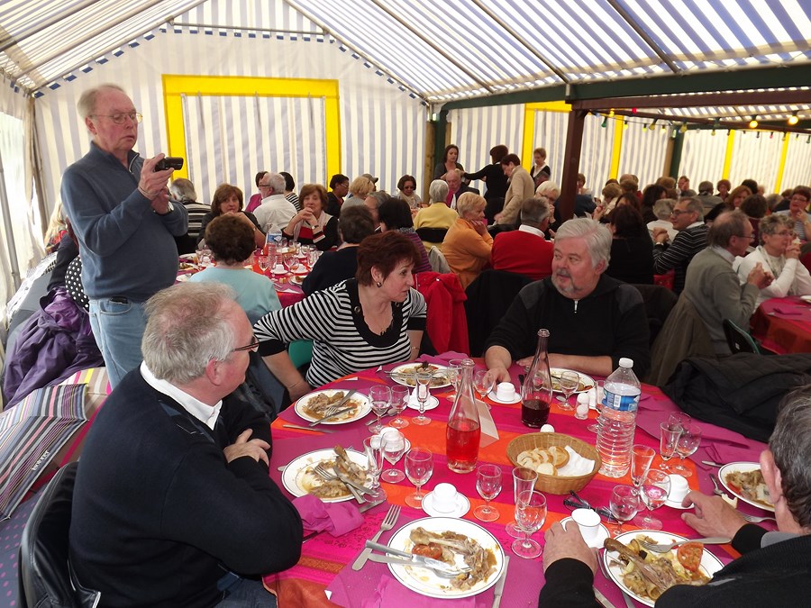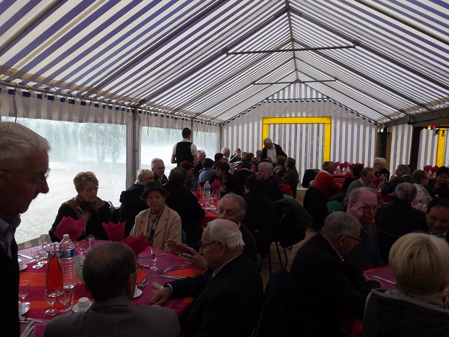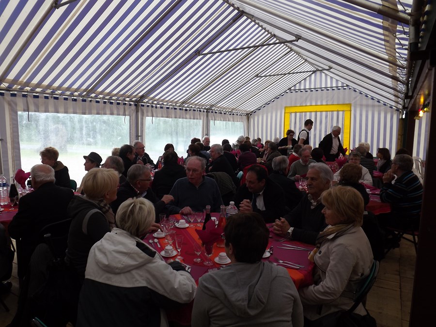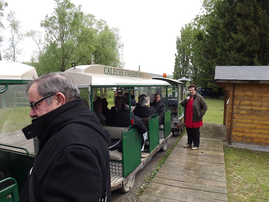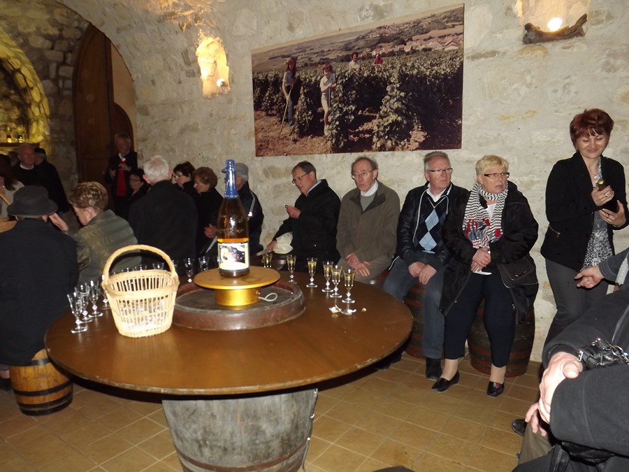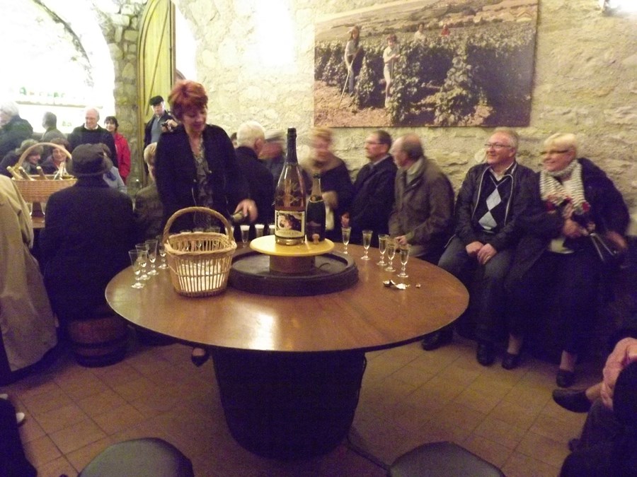 Pour commencer cette visite champenoise un tour en petit train dans les vignobles, avec un commentaire très instructif de l'organisatrice de notre déplacement, le soleil était dans le ciel mais le vent aussi les doudounes étaient de rigueur. Après ce petit tour ouvrant l'appétit un apéro local et un repas très correct avec accompagnement musical et même pour les plus courageux quelques pas de danse. Ce repas était sous chapiteau et la chaleur était un peu manquante à l'arrivée mais le vin et l'ambiance aidant la chaleur est revenue très vite.