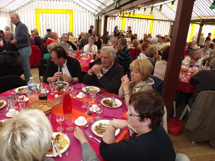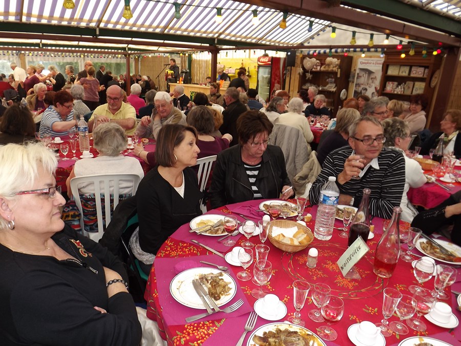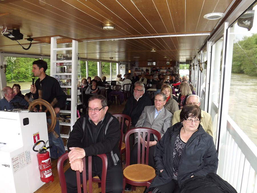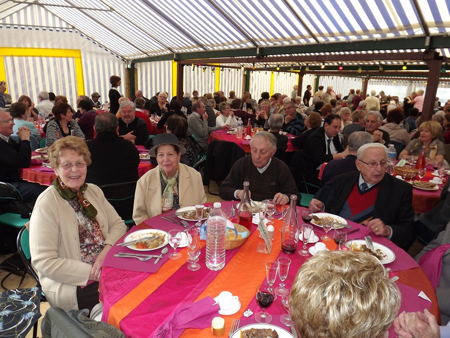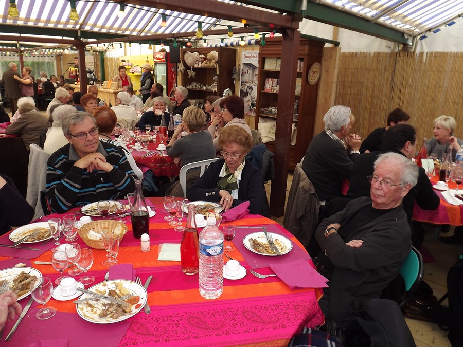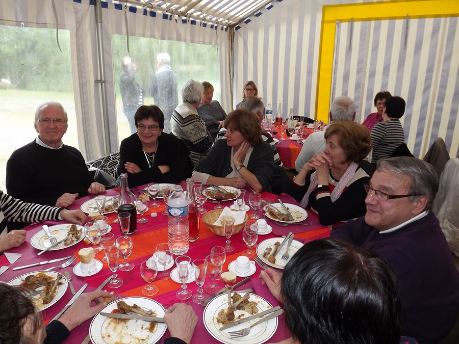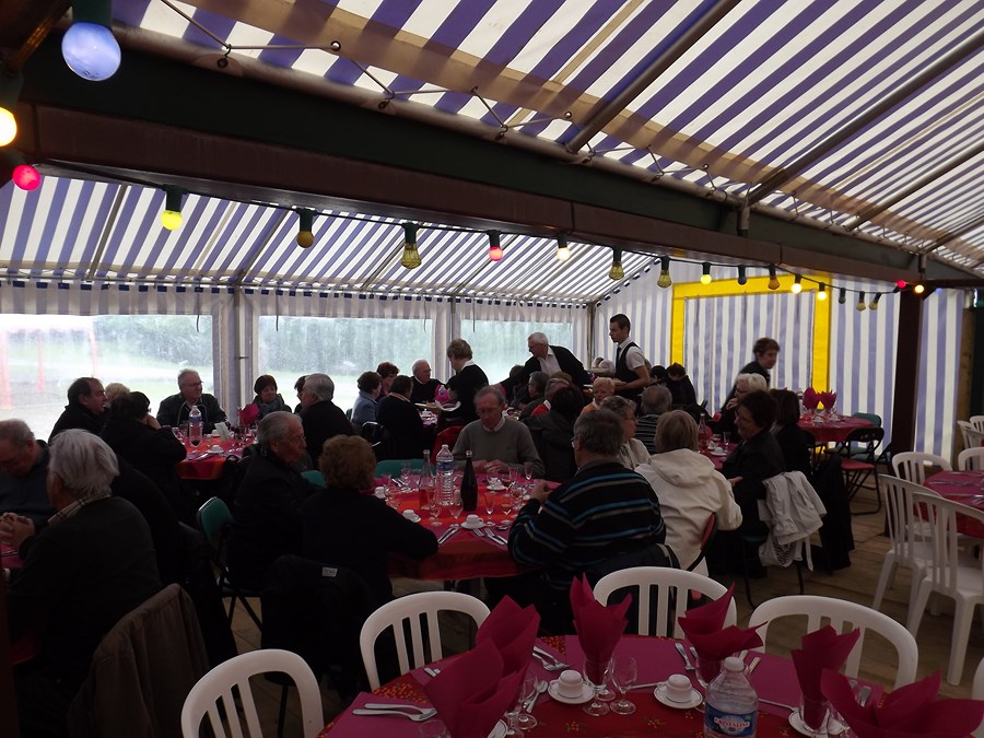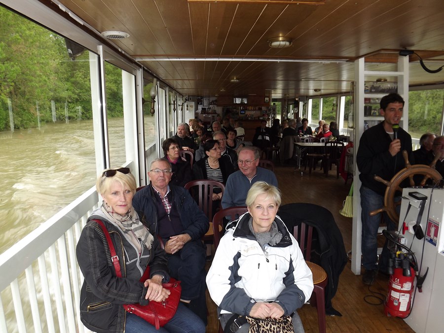 Pour commencer cette visite champenoise un tour en petit train dans les vignobles, avec un commentaire très instructif de l'organisatrice de notre déplacement, le soleil était dans le ciel mais le vent aussi les doudounes étaient de rigueur. Après ce petit tour ouvrant l'appétit un apéro local et un repas très correct avec accompagnement musical et même pour les plus courageux quelques pas de danse. Ce repas était sous chapiteau et la chaleur était un peu manquante à l'arrivée mais le vin et l'ambiance aidant la chaleur est revenue très vite.