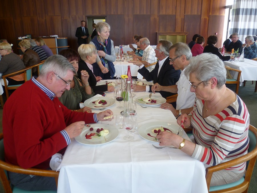 Si la préparation fut laborieuse la réalisation est réussie. Pour notre premier repas de printemps 75 participants dont beaucoup ont découverts le Lycée hôtelier de Metz. Un repas excellent, de bons vins et plein de petits jeunes et jeunettes pour nous servir, ce qui nous a procuré un bon coup de jeunesse. Nous avons déjà pris date pour l'an prochain!