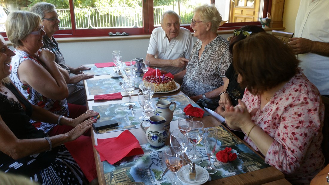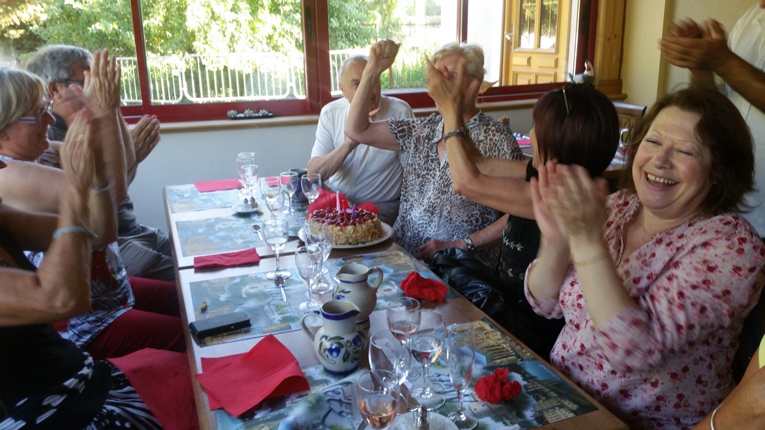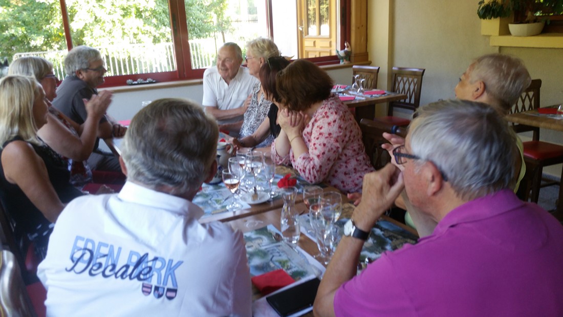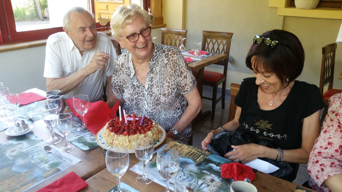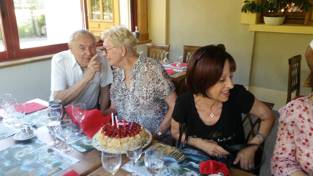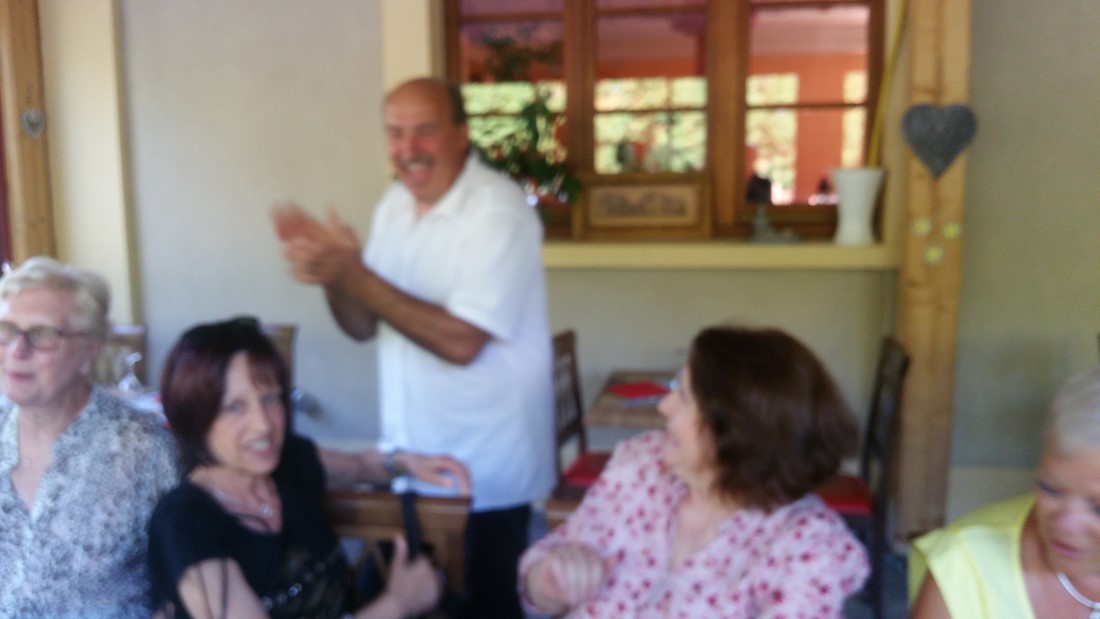 Comme d'habitude un petit repas froid au Chalet de vaux au préalable ce qui nous a permis de souhaiter bon anniversaire à Huguette une de nos plus fidèles adhérentes.