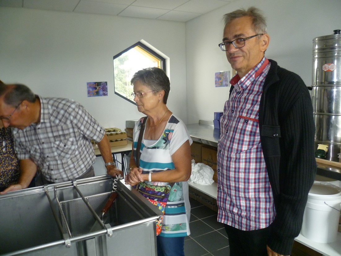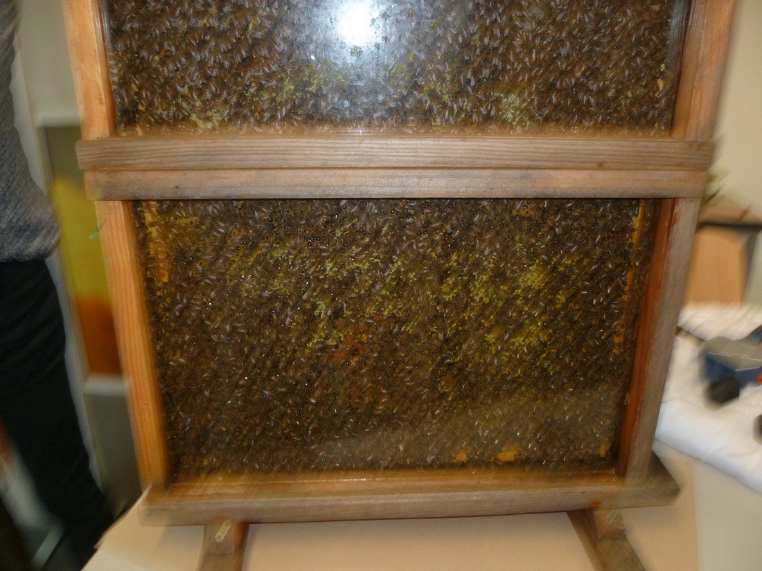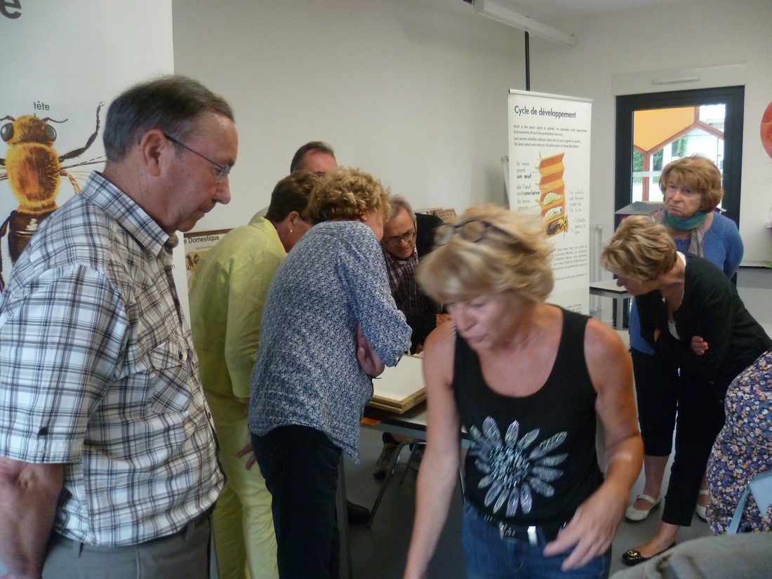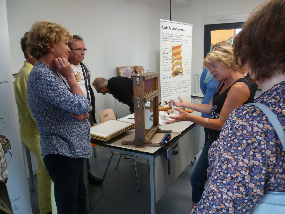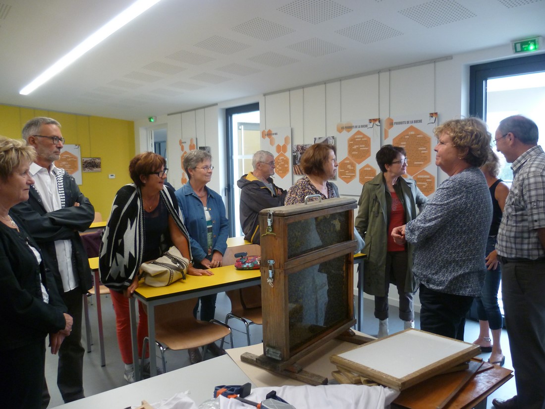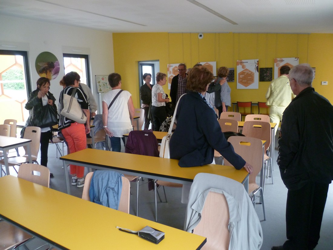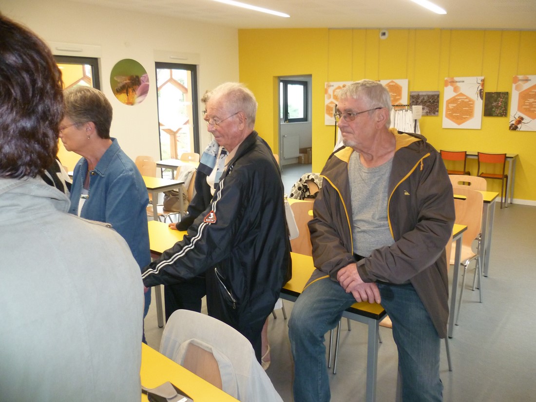 C'est à l'école rucher que nous nous sommes rendu. Une visite guidée par la directrice de l'établissement grande connaisseuse du monde apicole car apicultrice elle-même et remarquable pédagogue. Un monde assez extraordinaire que celui des abeilles. Monde très travailleur où la reine mère pond 2.000 oeufs par jour et ce pendant cinq années, mais un monde très misandrique où le mâle n'a droit qu'à une partie de jambes en l'air ces organes génitaux restant dans la reine mère.