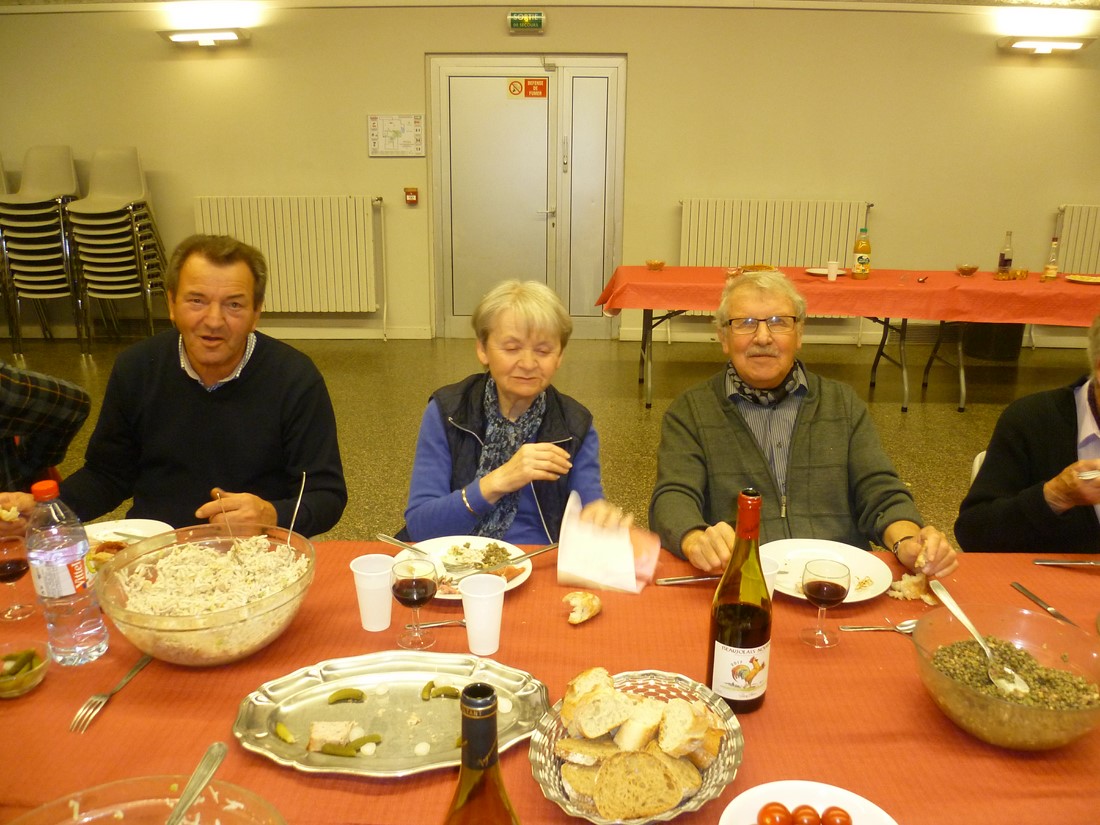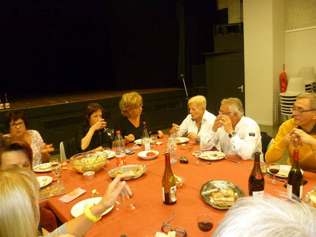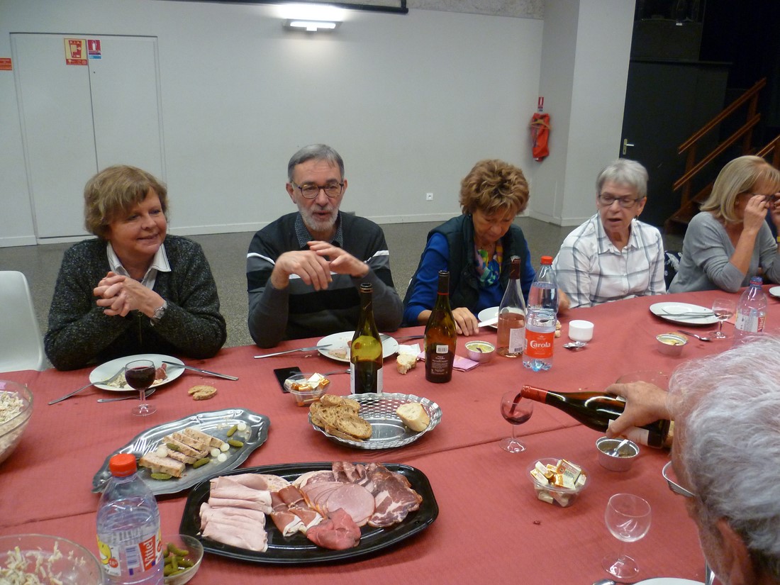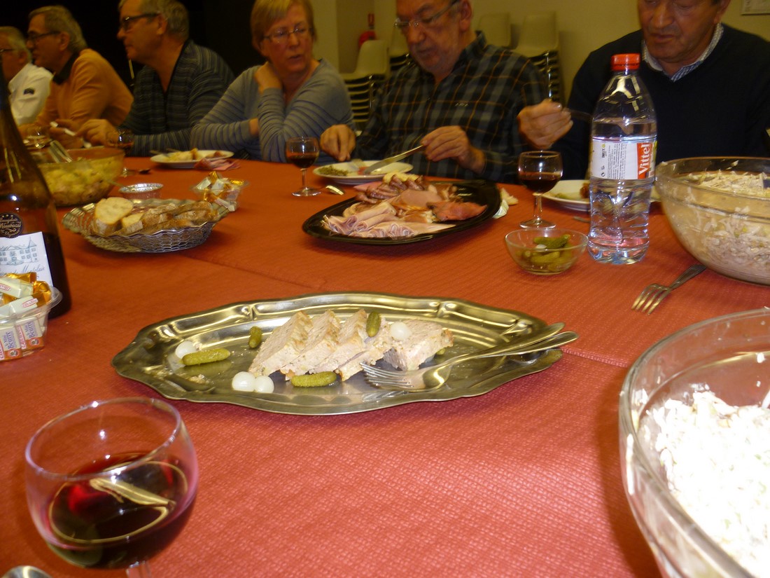 C'est un véritable festival qu'elles nous avaient préparé pour ce beaujolais nouveau. Crudités diverses et originales : céleris au noix, lentilles et patates de tradition. Le repas de cochonnailles, dont la terrine faite maison, excellent. La tarte maison faite du matin aux pommes et poires. Rien ne manquait pour le bonheur de nos papilles.