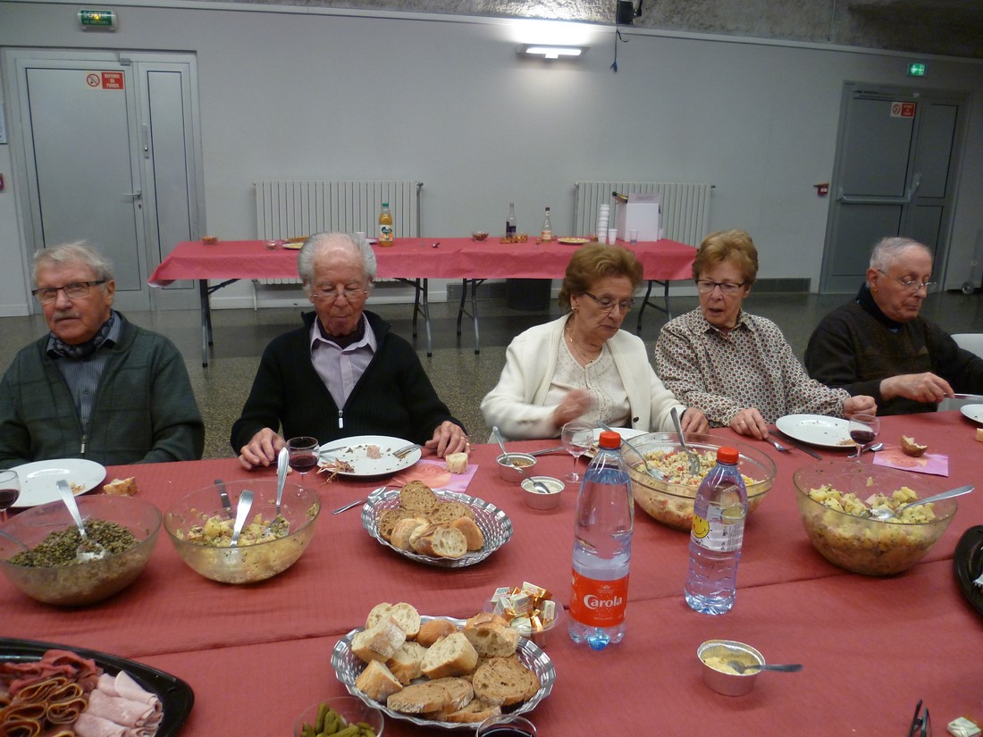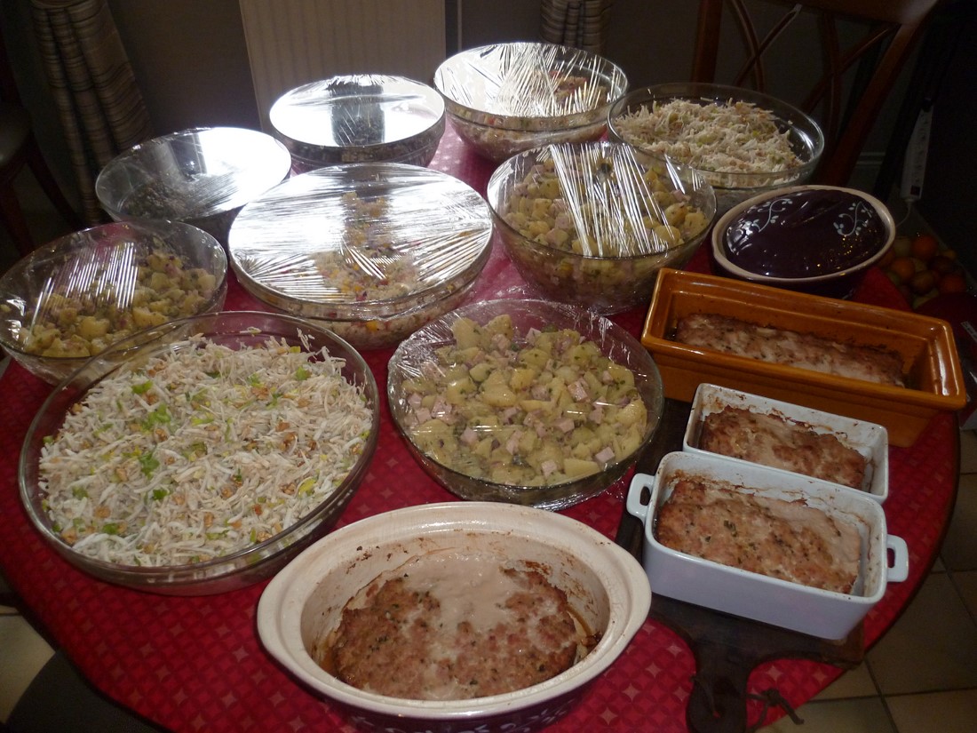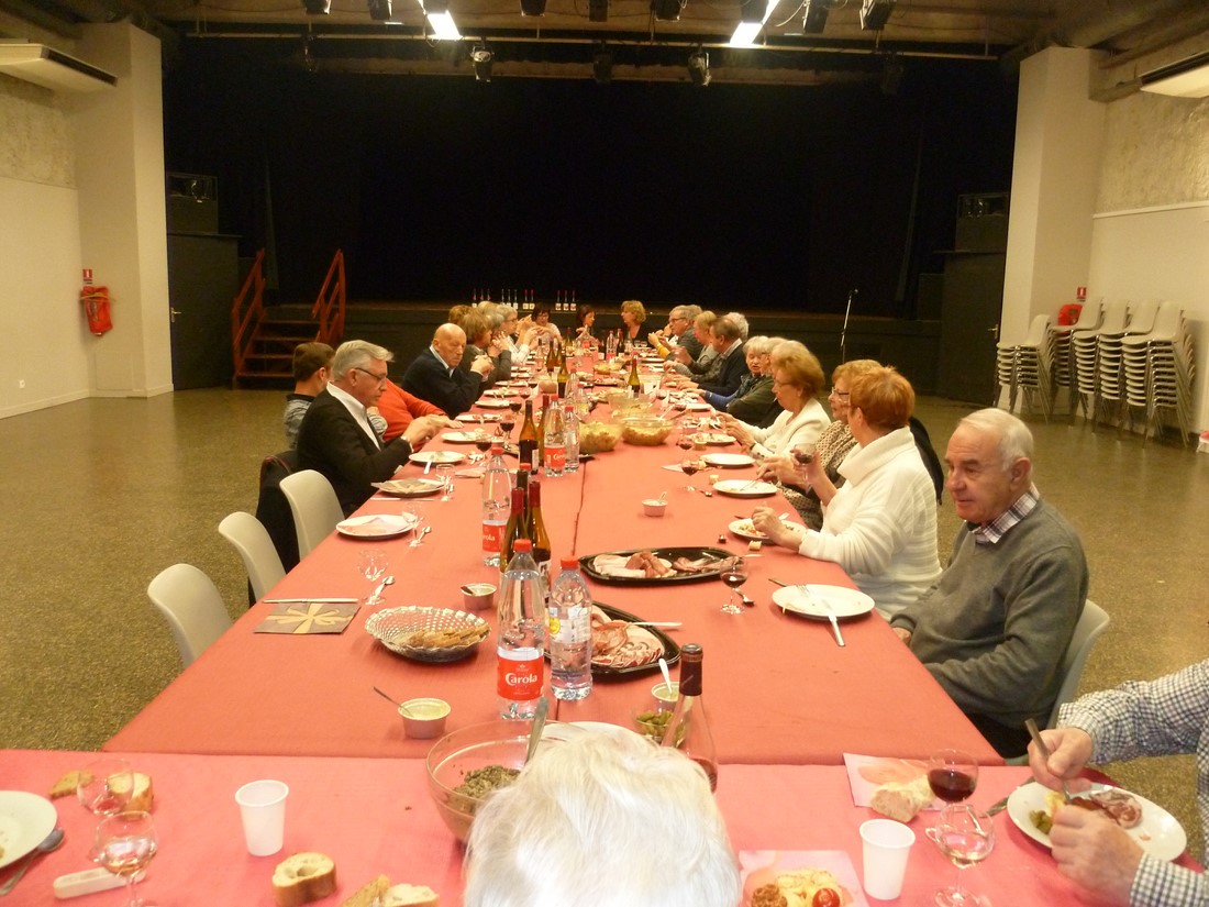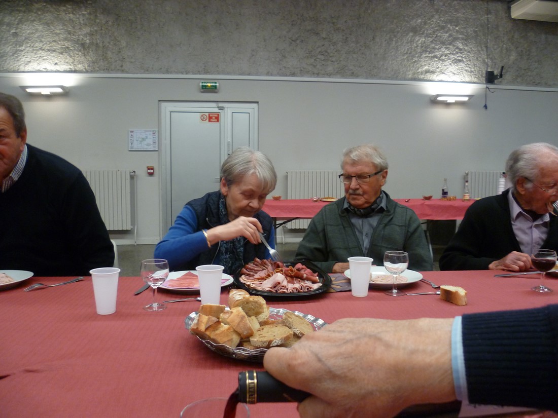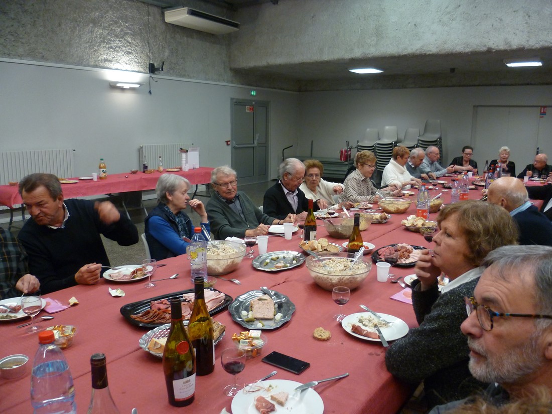 C'est un véritable festival qu'elles nous avaient préparé pour ce beaujolais nouveau. Crudités diverses et originales : céleris au noix, lentilles et patates de tradition. Le repas de cochonnailles, dont la terrine faite maison, excellent. La tarte maison faite du matin aux pommes et poires. Rien ne manquait pour le bonheur de nos papilles.