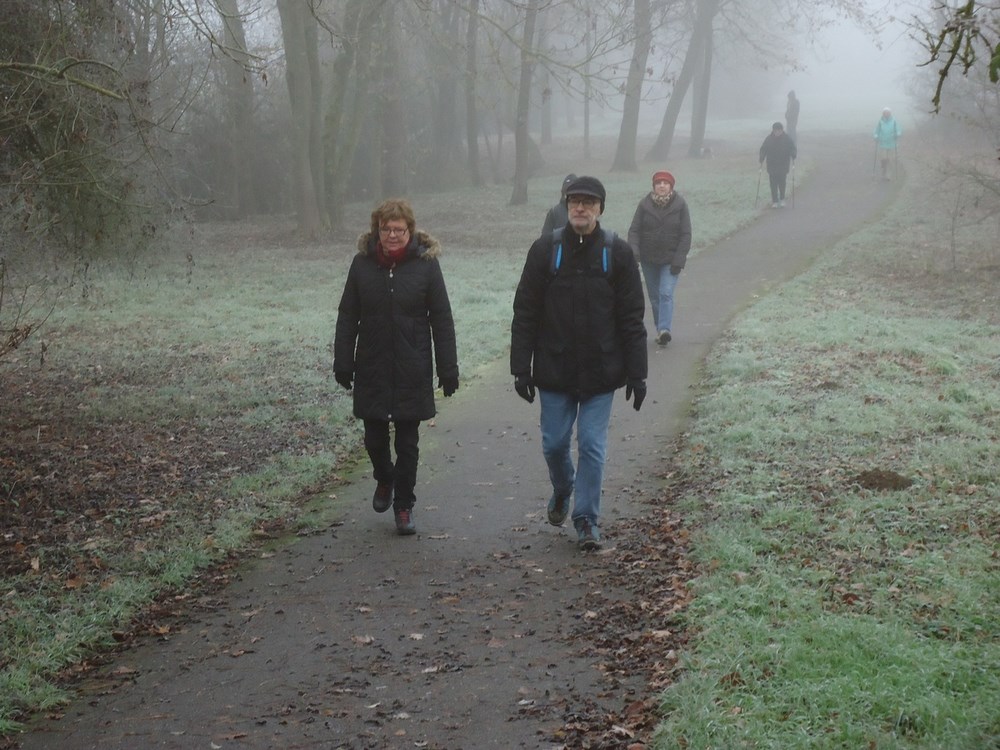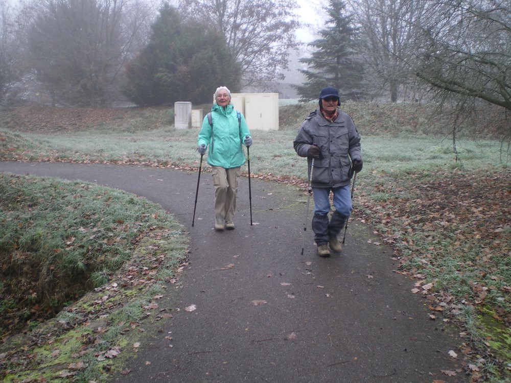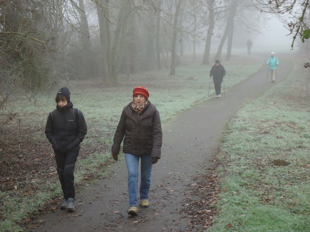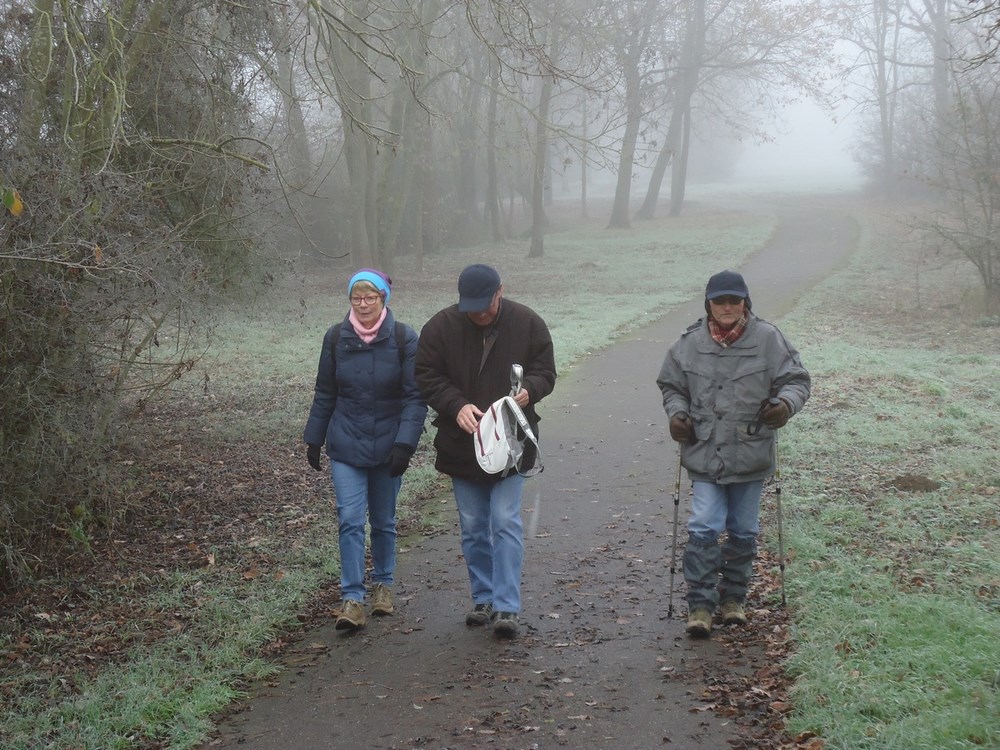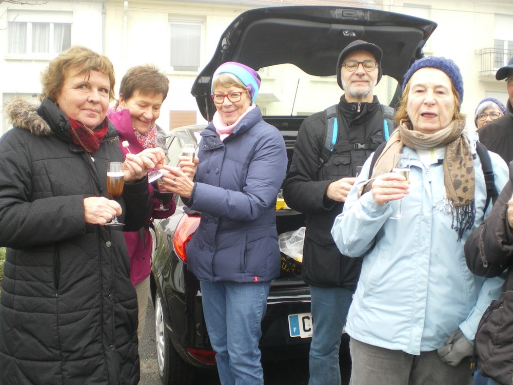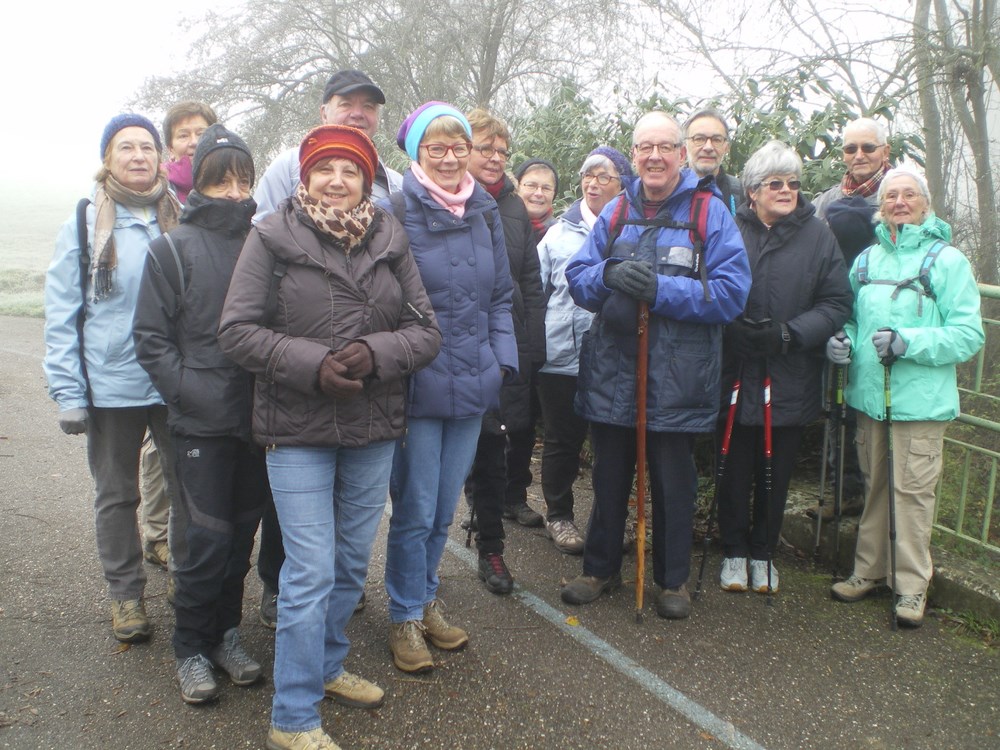 Bonne humeur ce matin malgré le brouillard et quelques glissades qui ne nous ont pas empêchés d’honorer la bougie supplémentaire de Michèle .