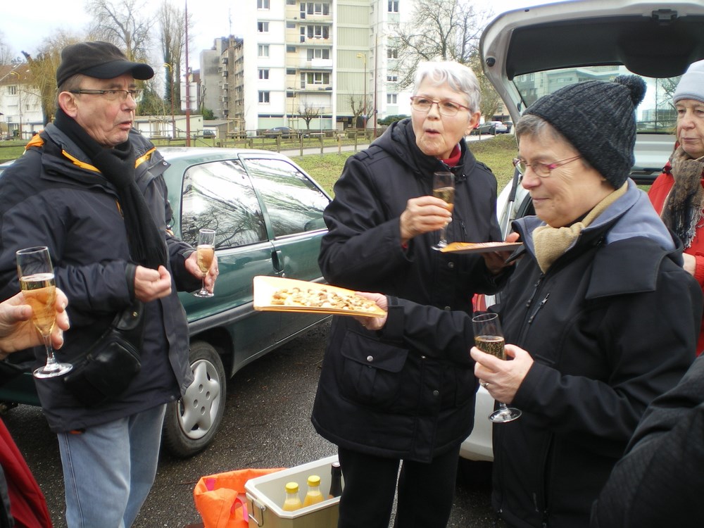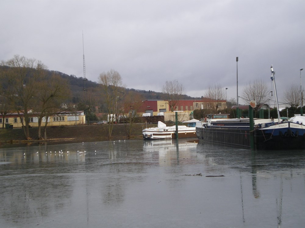 Dégel en cours sur les bords de la Moselle . Cependant encore quelques péniches prises dans les glaces sur les étangs environnants , alors que le trafic a repris sur la Moselle , tout comme notre tradition d’honorer la bougie supplémentaire des participants . Merci Claude .
