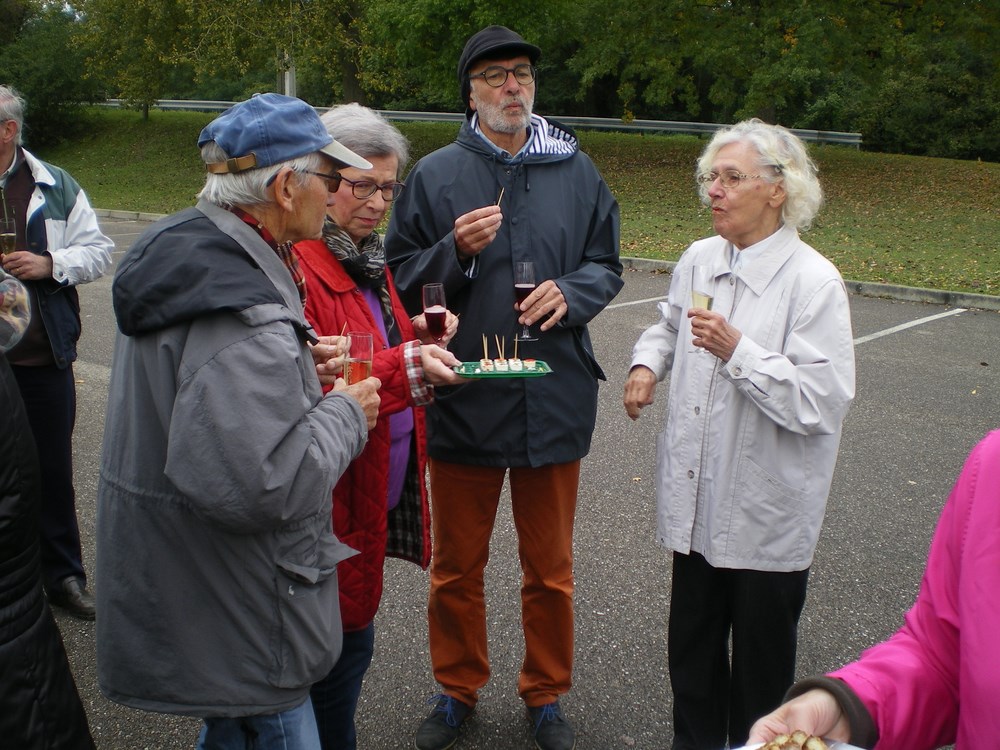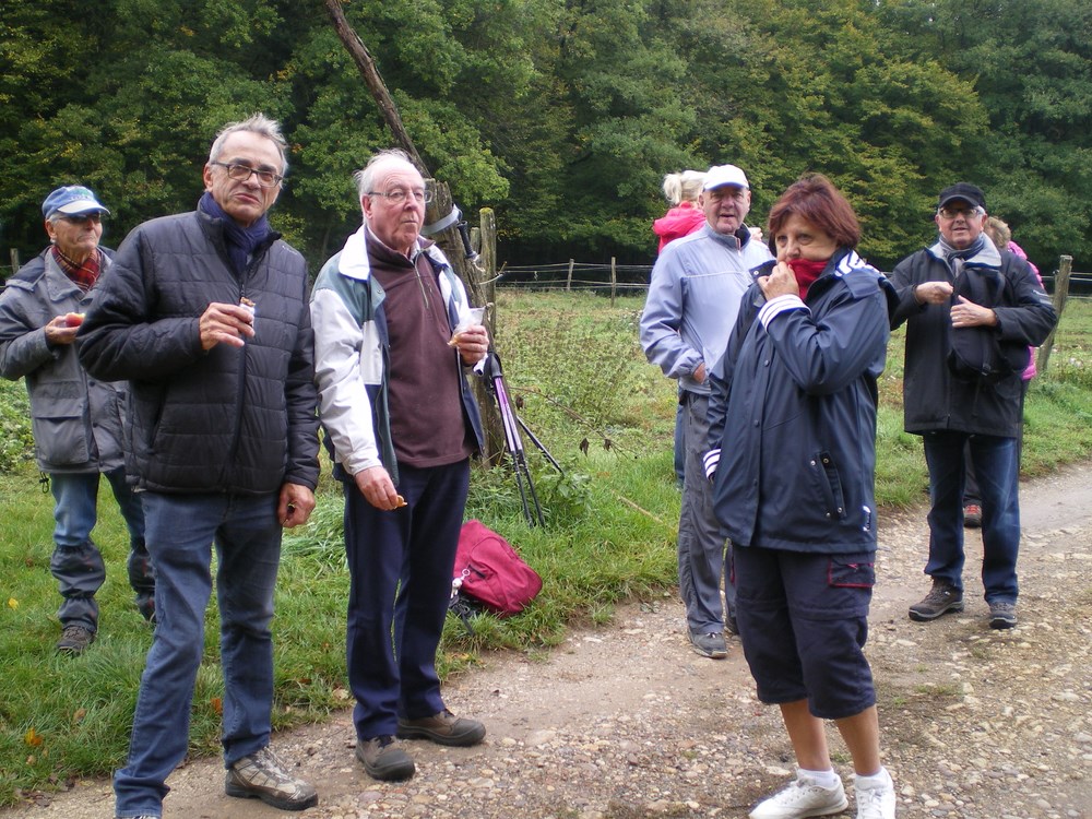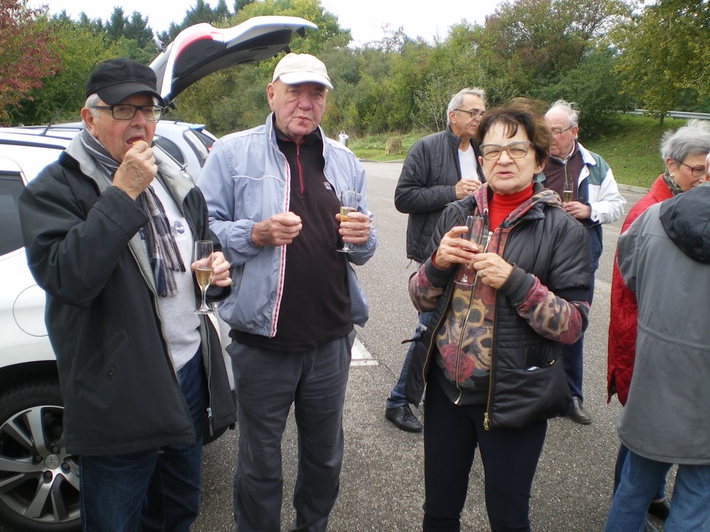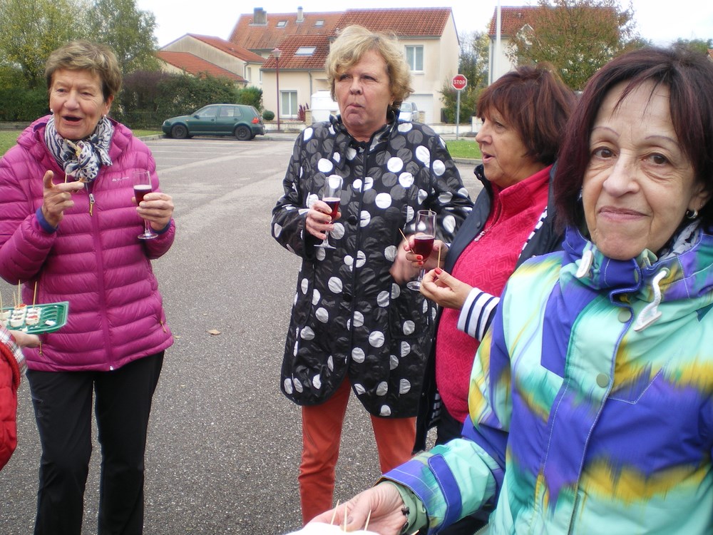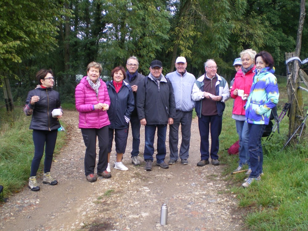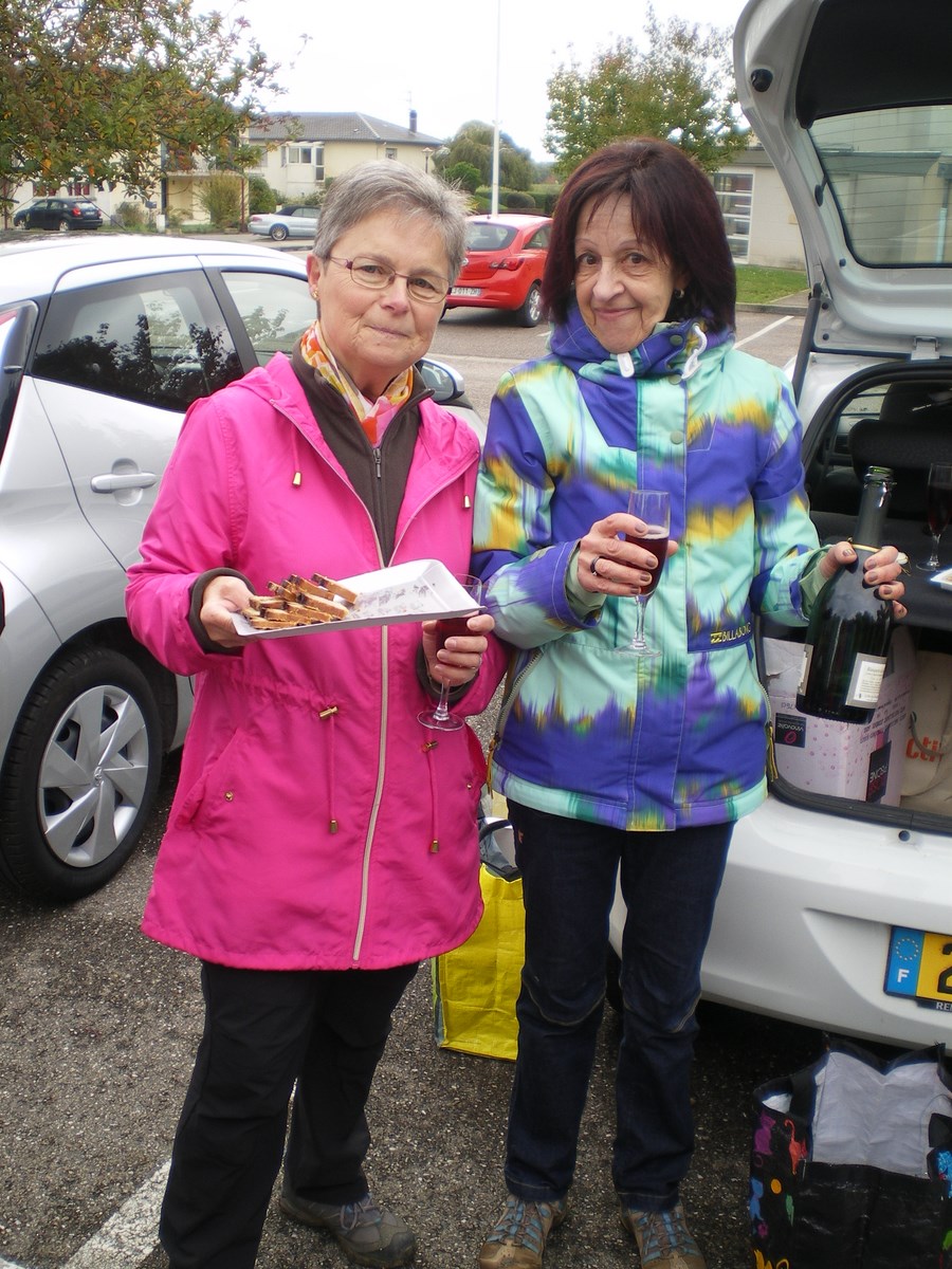 Randonnée exceptionnelle avec la présence de jumelles ( Chantal et Martine nées le même jour ) qui n’ont pas manqué de fêter l’évènement à la fin du parcours . Merci à elles .