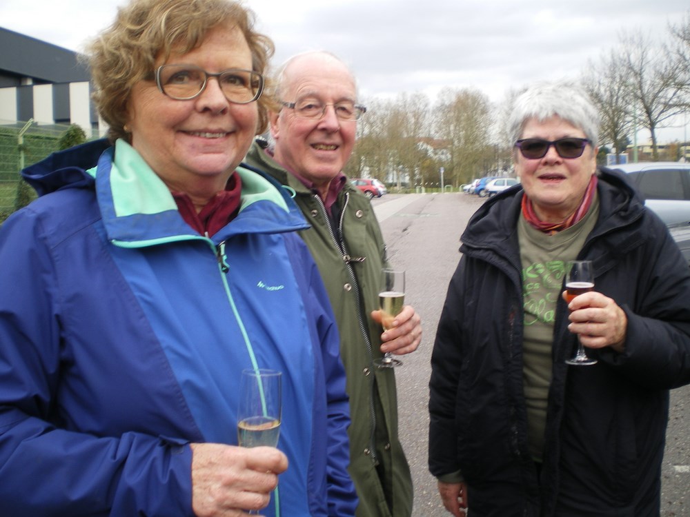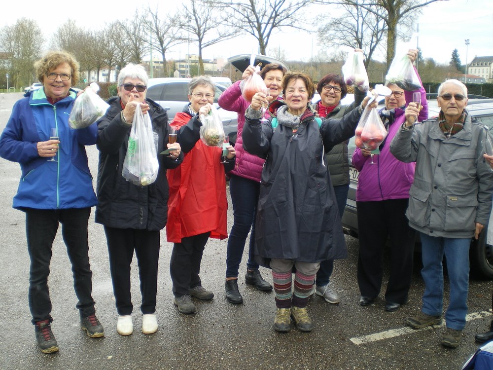 Nullement découragés par les averses précoces , notre détermination à boucler notre parcours a eu raison des nuages qui n’ont plus osé nous importuner . Cela nous a permis de fêter dignement la majorité de notre ainé Claude qui , outre les gâteries , avait prévu une tombola surprise . Que des gagnants pour de superbes lots de légumes bios !!! Merci Claude pour cette sympathique initiative .