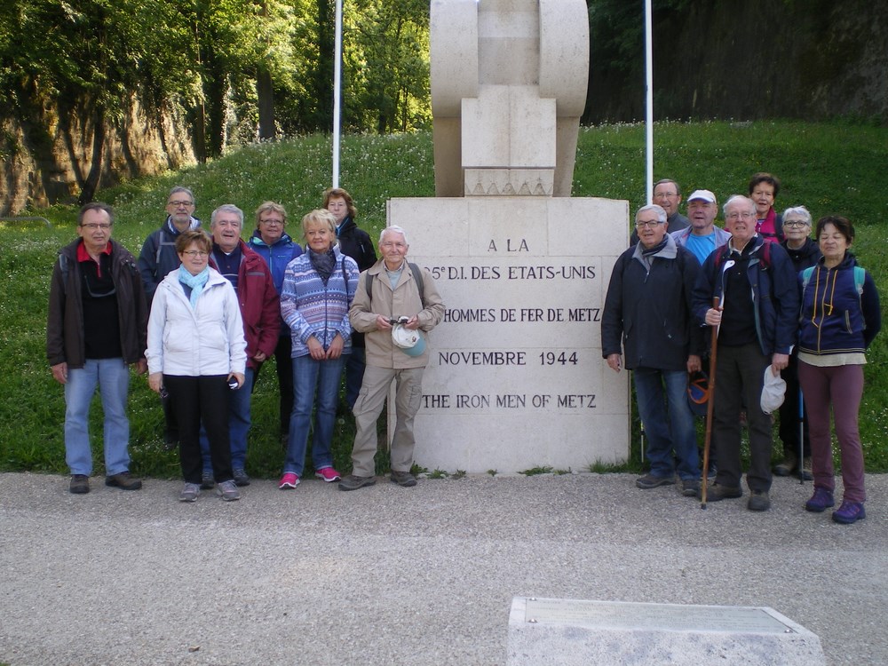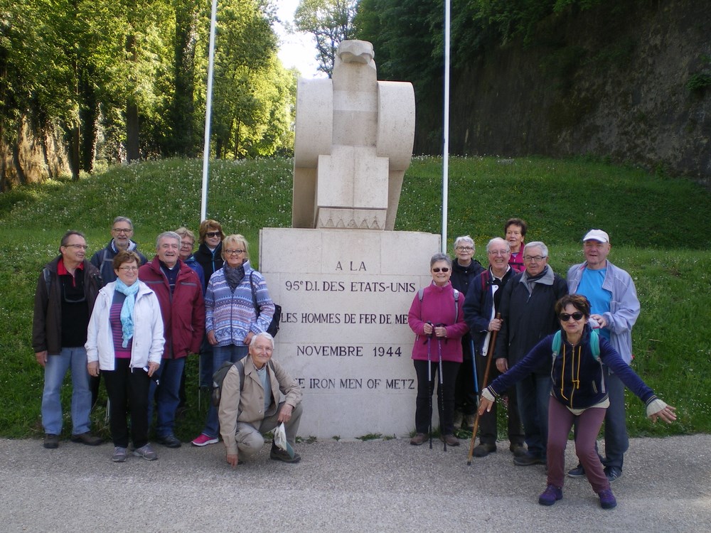 C’est avec le renfort de Rose Marie et Paul venus du sud ouest que nous nous sommes attaqués à l’Aigle Américain protégeant les murailles de Bellecroix . Après quelques photos du point de vue surplombant Metz , retour au parking de la patinoire via un arrêt indispensable à la Porte des Allemands…nos 10 kms étaient parcourus !