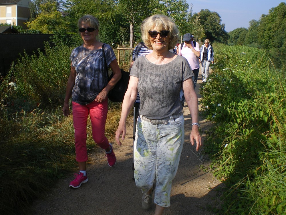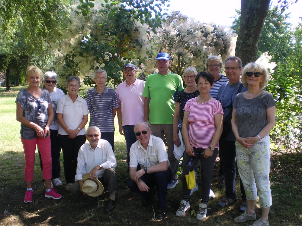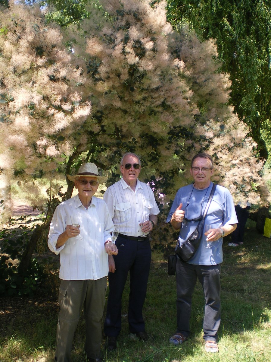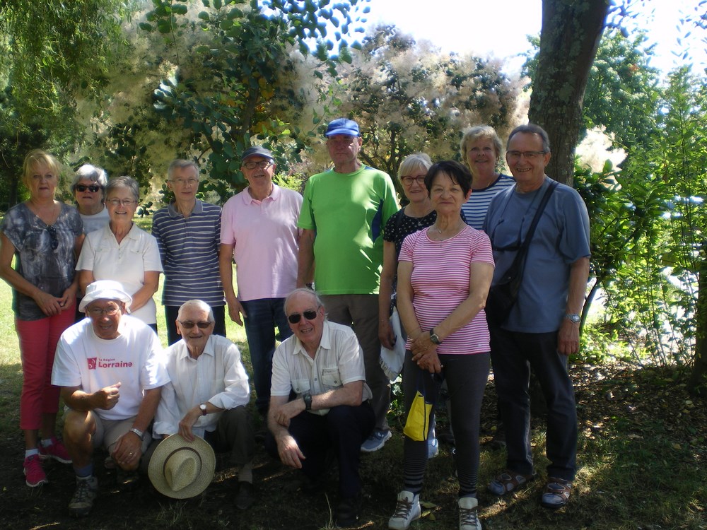 Divine matinée sur les berges du canal de Jouy . Bien abrités des rayons solaires , nous sommes arrivés à l’heure prévue sous la tonnelle où la table était dressée pour fêter Annie et Claude que nous remercions . Avant de nous quitter , nous avons immortalisé nos Claude du jour la tête dans les nuages…