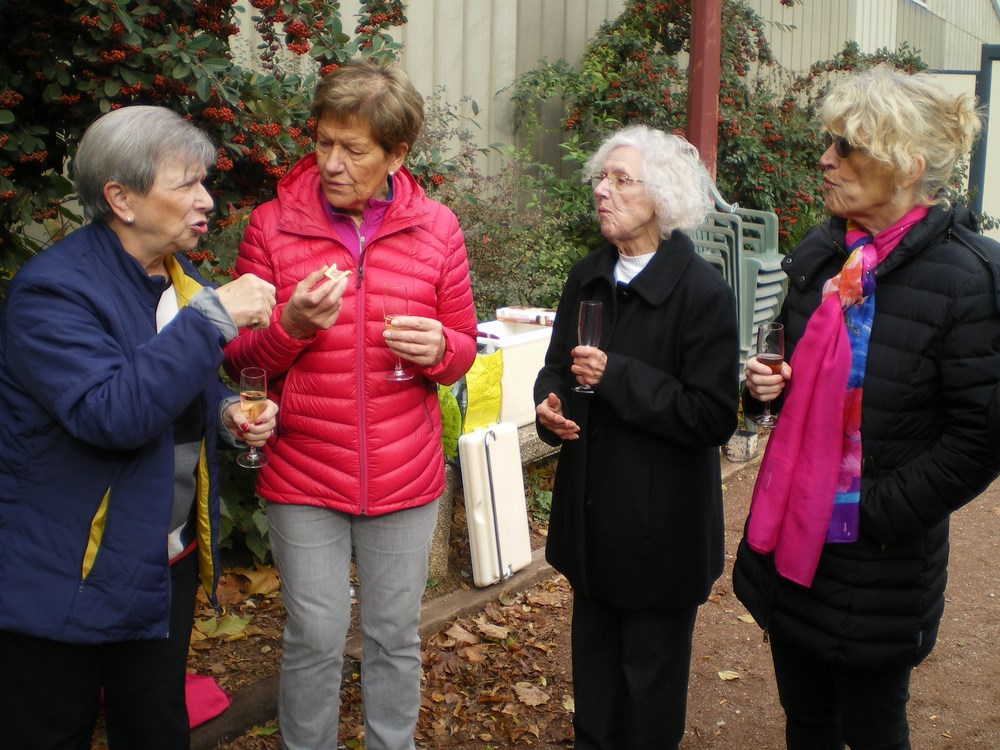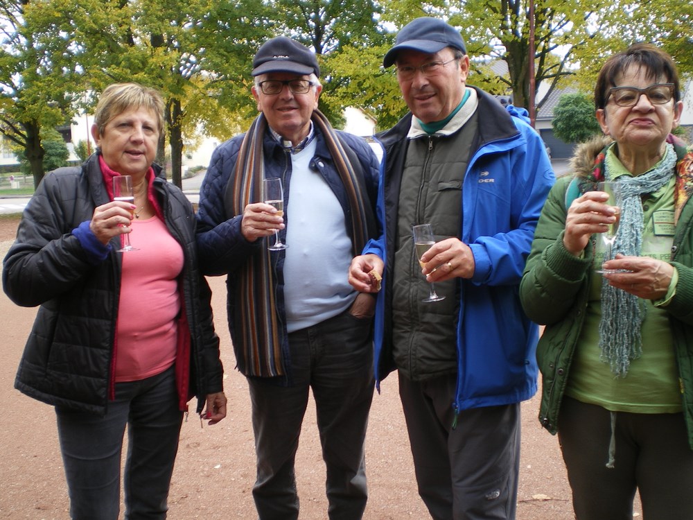 Assistance rajeunie par la présence de deux nouvelles mascottes qui ont imprimé un train d’enfer au groupe , ce qui nous a permis d’arriver à l’heure pour les réjouissances prévues par Martine et Claude , avec une pensée pour Dominique qui a du rester au repos .