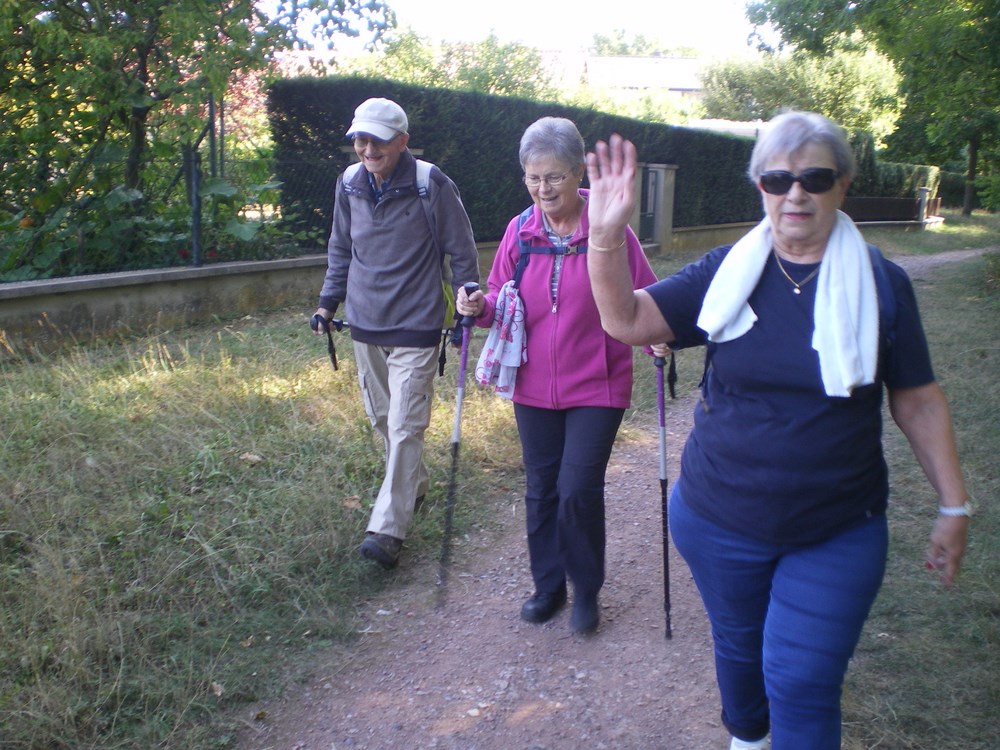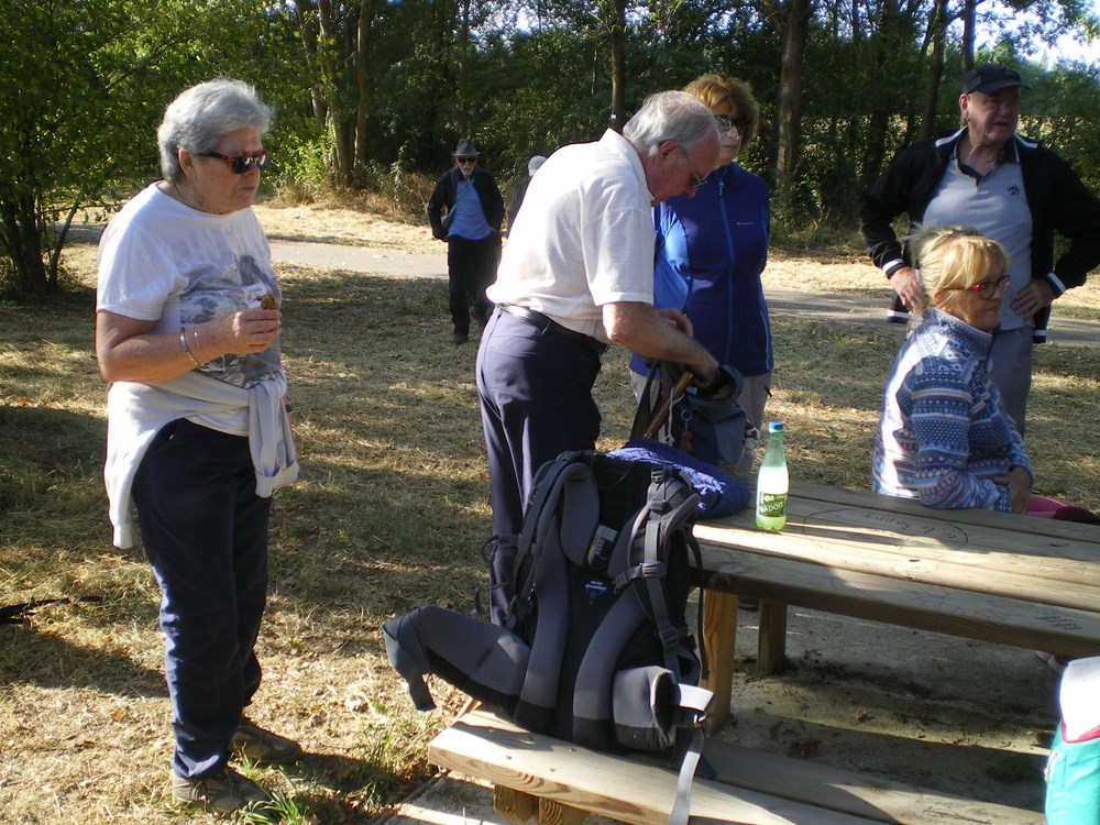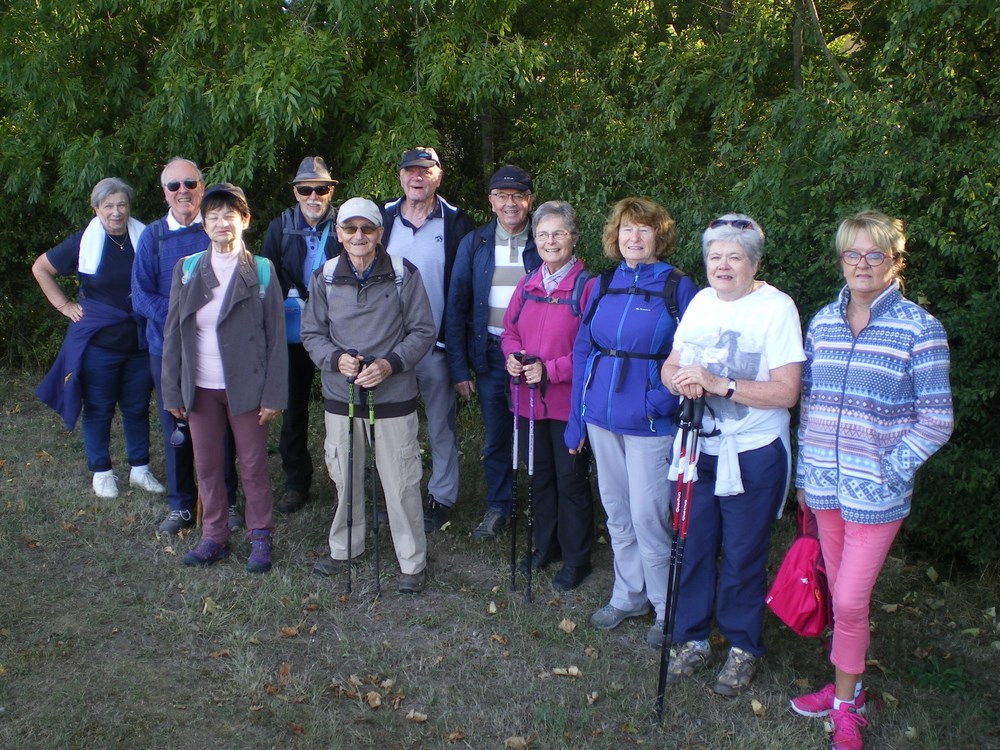 Reprise en douceur ce matin pour 12 marcheurs sous un temps très clément . L’état de forme de chacun , malgré les 2 mois de vacances , a permis un rythme de croisière agréable . Et , surprise à l’arrivée , notre délégué départemental nous attendait avec son épouse pour nous offrir le pot de départ…de la nouvelle saison ainsi que de la prolongation de son mandat . Merci Jean-Paul .