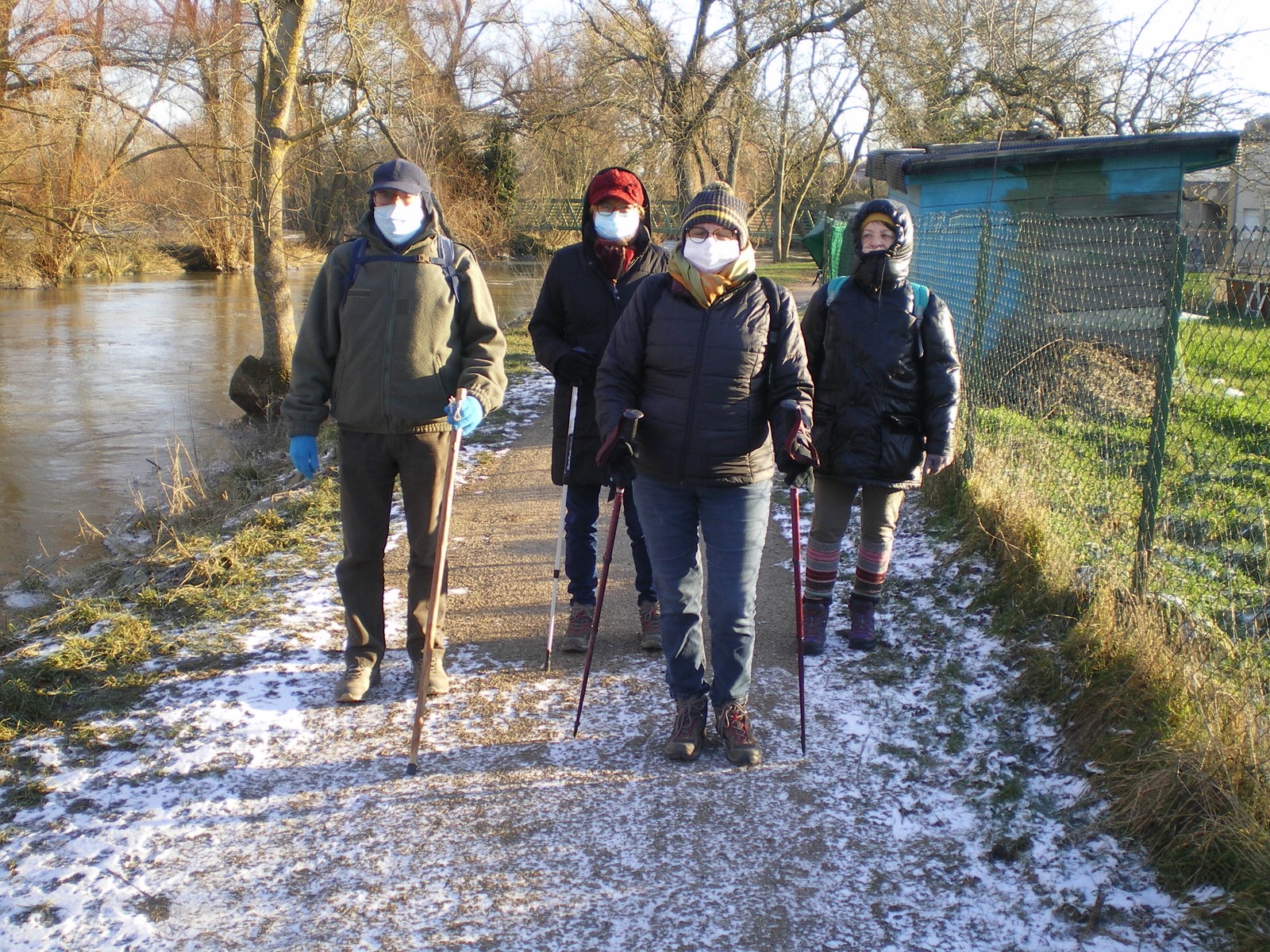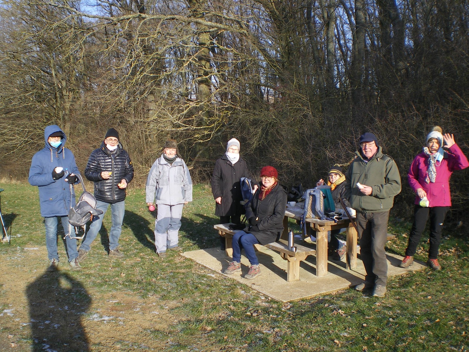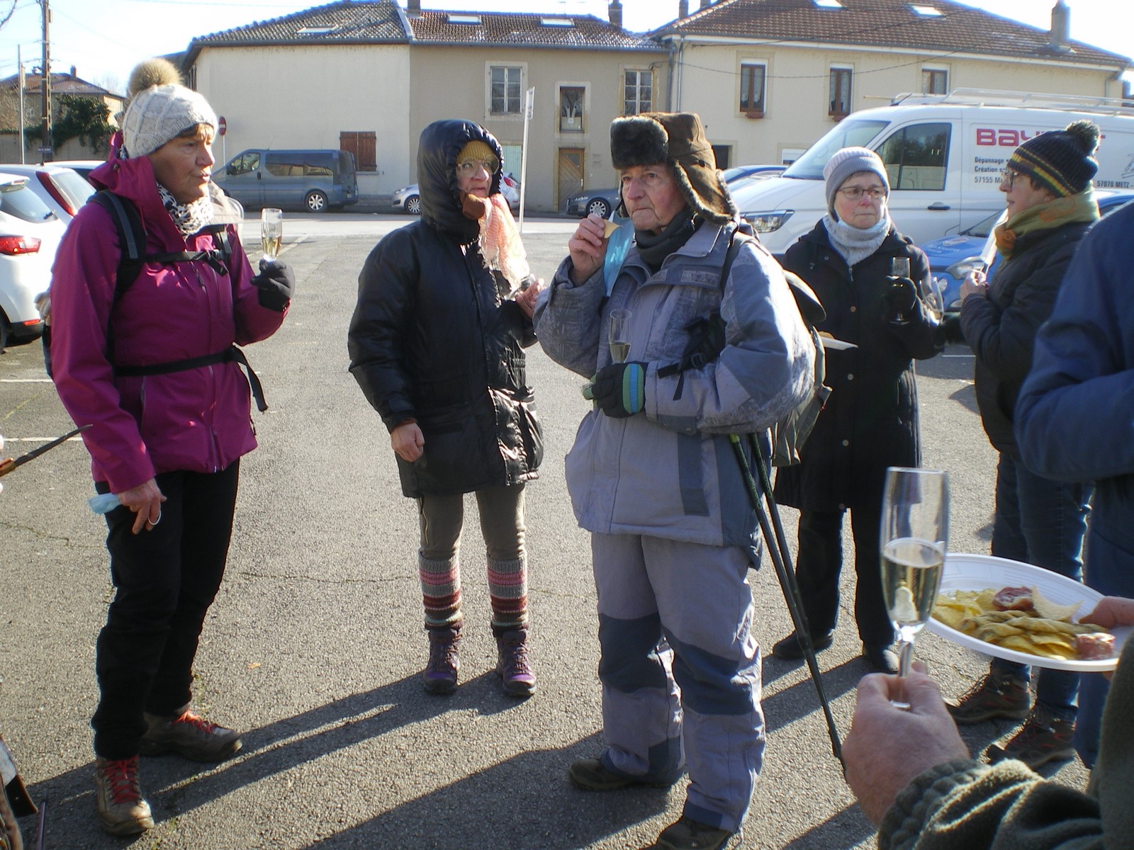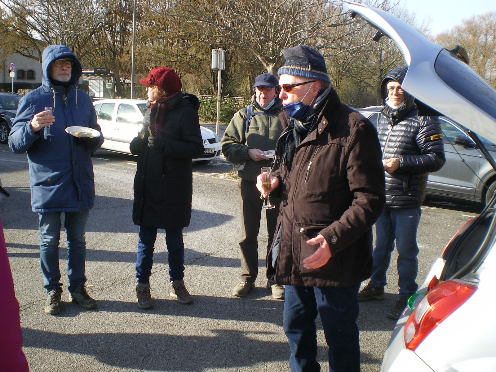 C’est par -7 degrés que nous avons sillonné les abords gelés de la Seille ainsi que du ruisseau St Pierre , malgré tout sur des chemins dégagés et non glissants en grande partie . Le soleil toujours présent a largement compensé la bise passagère . A l’arrivée nous avons eu la surprise d’être attendus par notre délégué départemental Jean-Paul pour un pot de l’amitié afin de renouer les liens de sympathie présentiels devenus rares depuis les confinements . Tous ont apprécié .