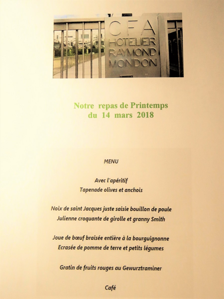C'est par un temps de printemps que nous nous sommes rendus, comme traditionnellement, au Lycée Hôtelier pour notre repas, bien dénommé, de printemps.