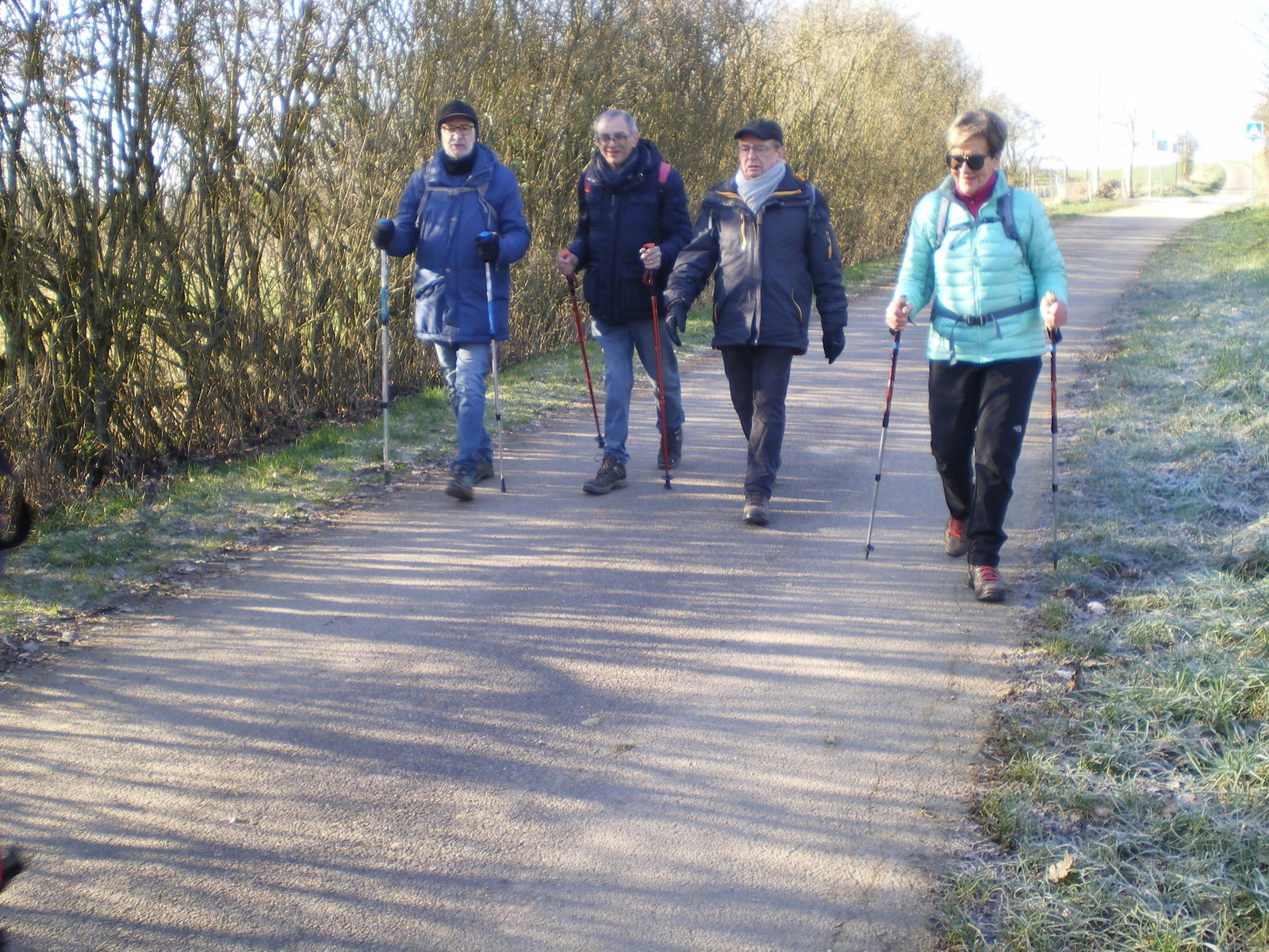 Seize randonneurs partis à la fraiche dont deux invités de la région de Toulouse et le retour de Claude W . 9,2 kms parcourus sous un beau soleil qui nous a permis d’engranger l’indispensable vitamine D si nécessaire à notre équilibre .