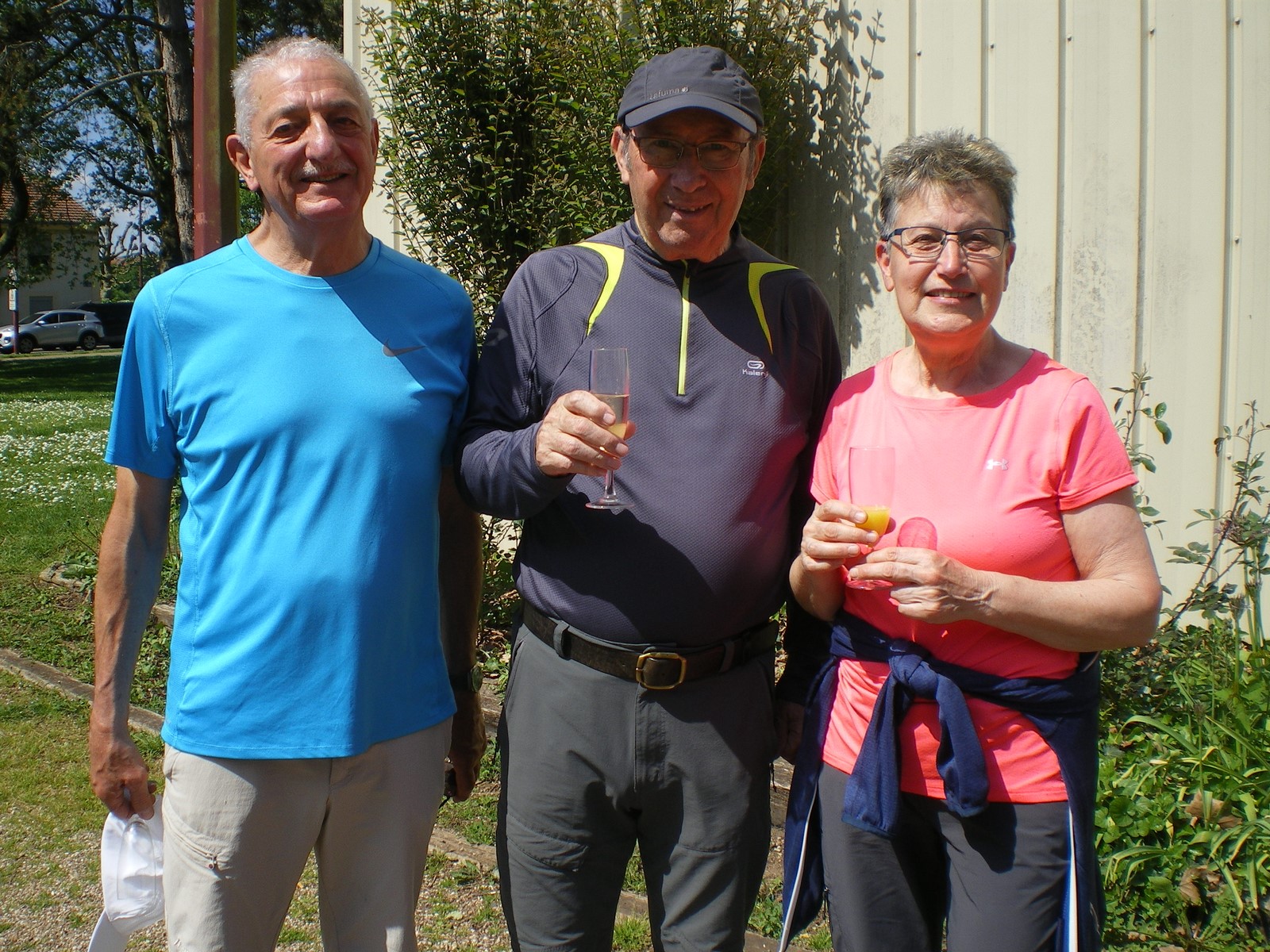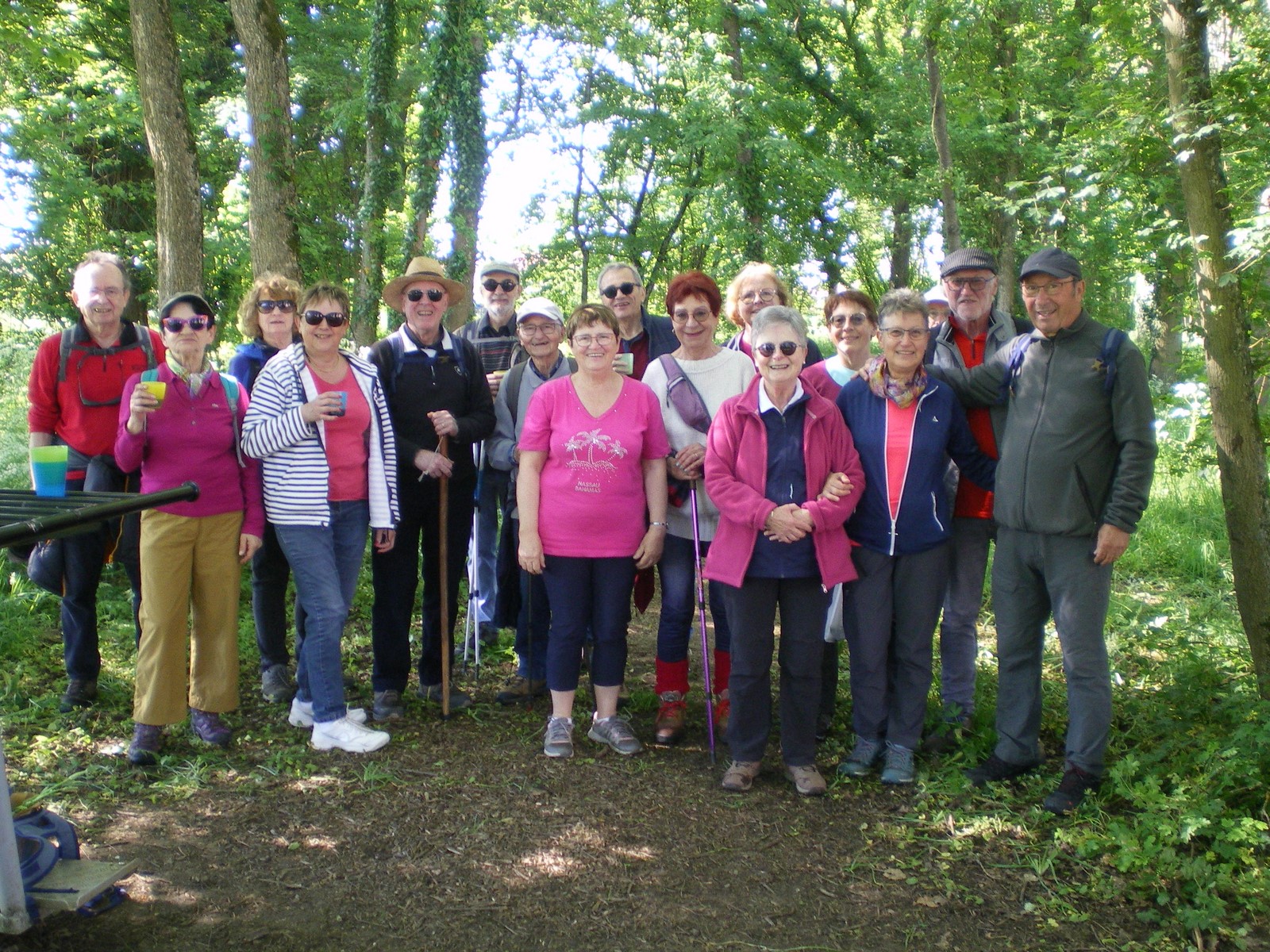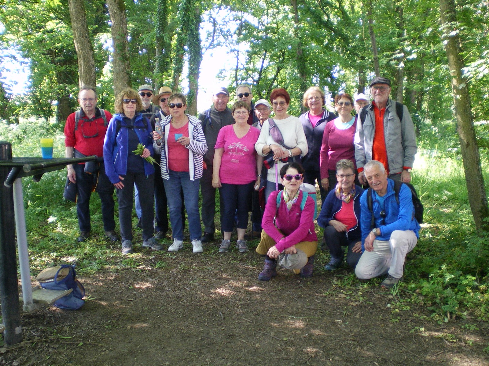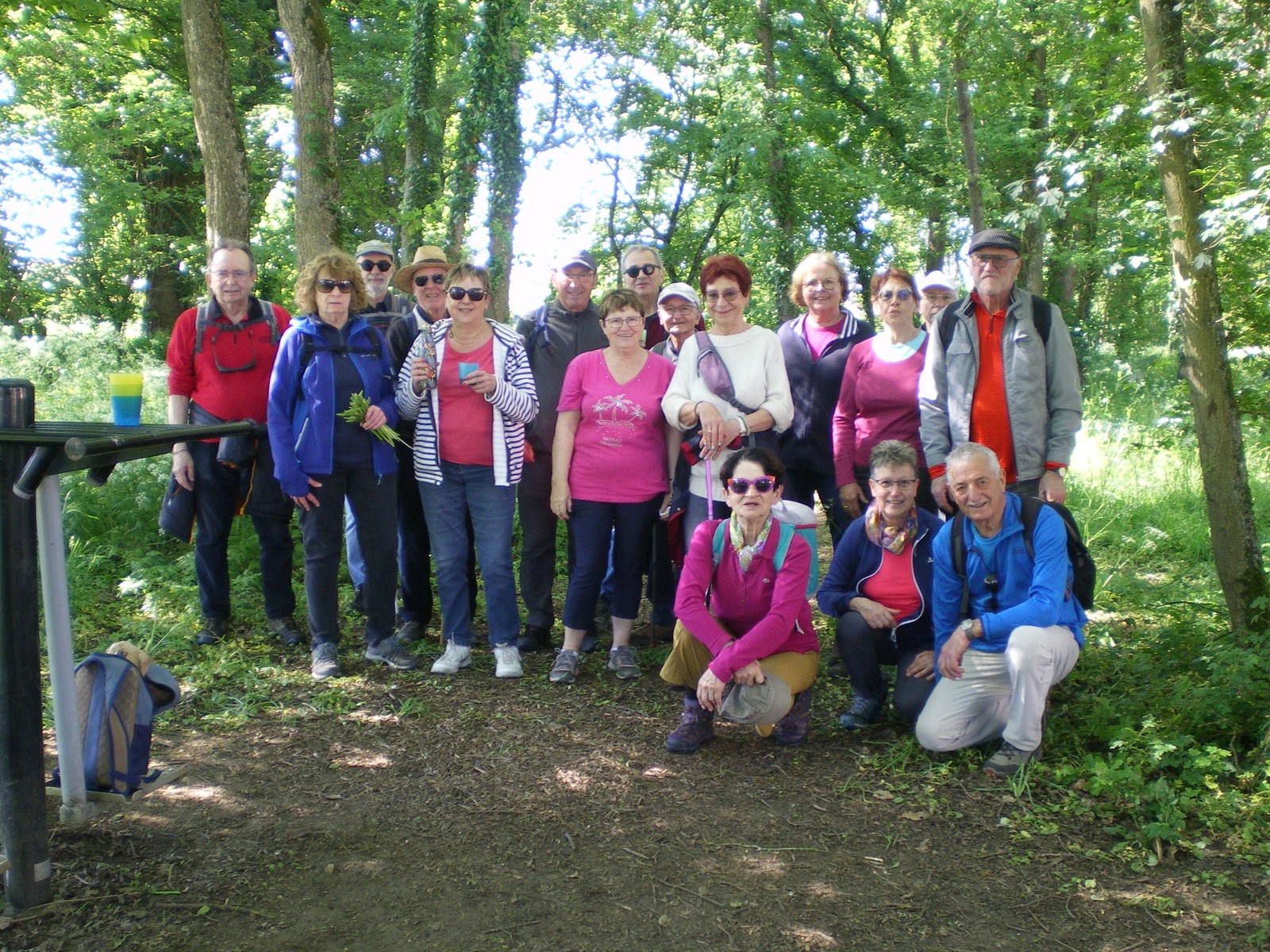 L’effet flamme olympique s’est fait ressentir dès ce matin avec 18 randonneurs à l’appel dont Rose Marie venue du sud ouest et le couple Scholz de Forbach en représentation de la Moselle Est . Sur le parcours certaines ont même pu récolter des asperges sauvages assez rares à découvrir . Enfin à l’arrivée nos bienfaitrices Mona et Solange avaient tout prévu pour fêter dignement leur grand jour . Merci à elles .