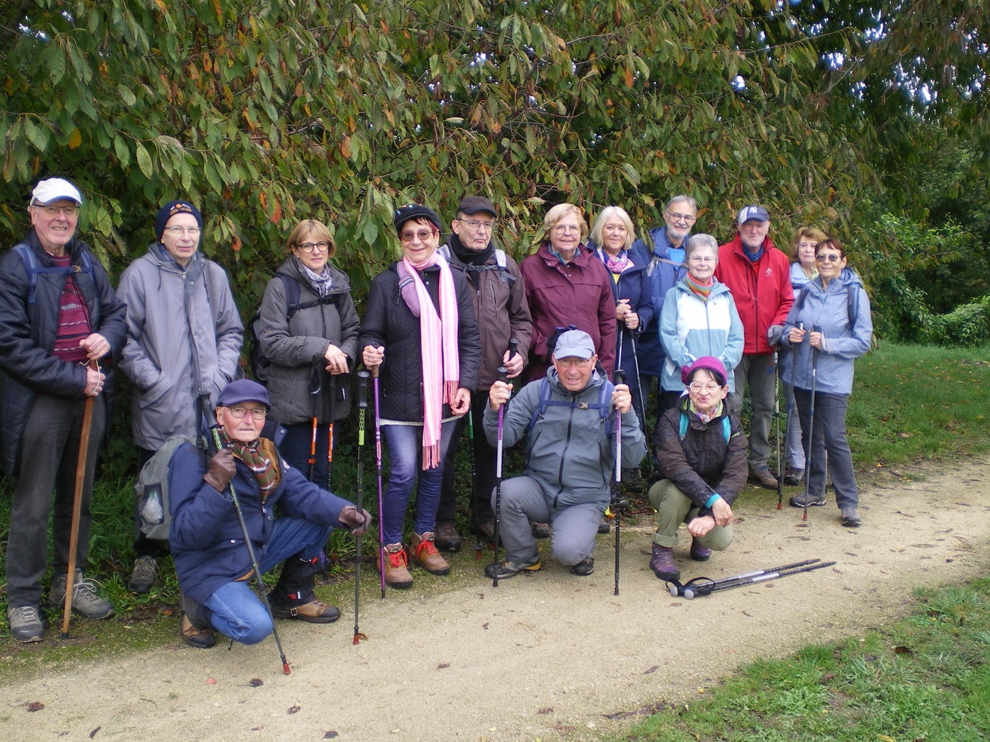 Après une journée d’hier bien arrosée , nous étions 16 ce matin à nous attaquer au Fort de Queuleu . Nous avons magistralement évité les embuscades boueuses du parcours habituel pour déboucher sur une victoire éclatante comme en témoignent les mines réjouies sur les photos dont une nous gratifie des beautés automnales .