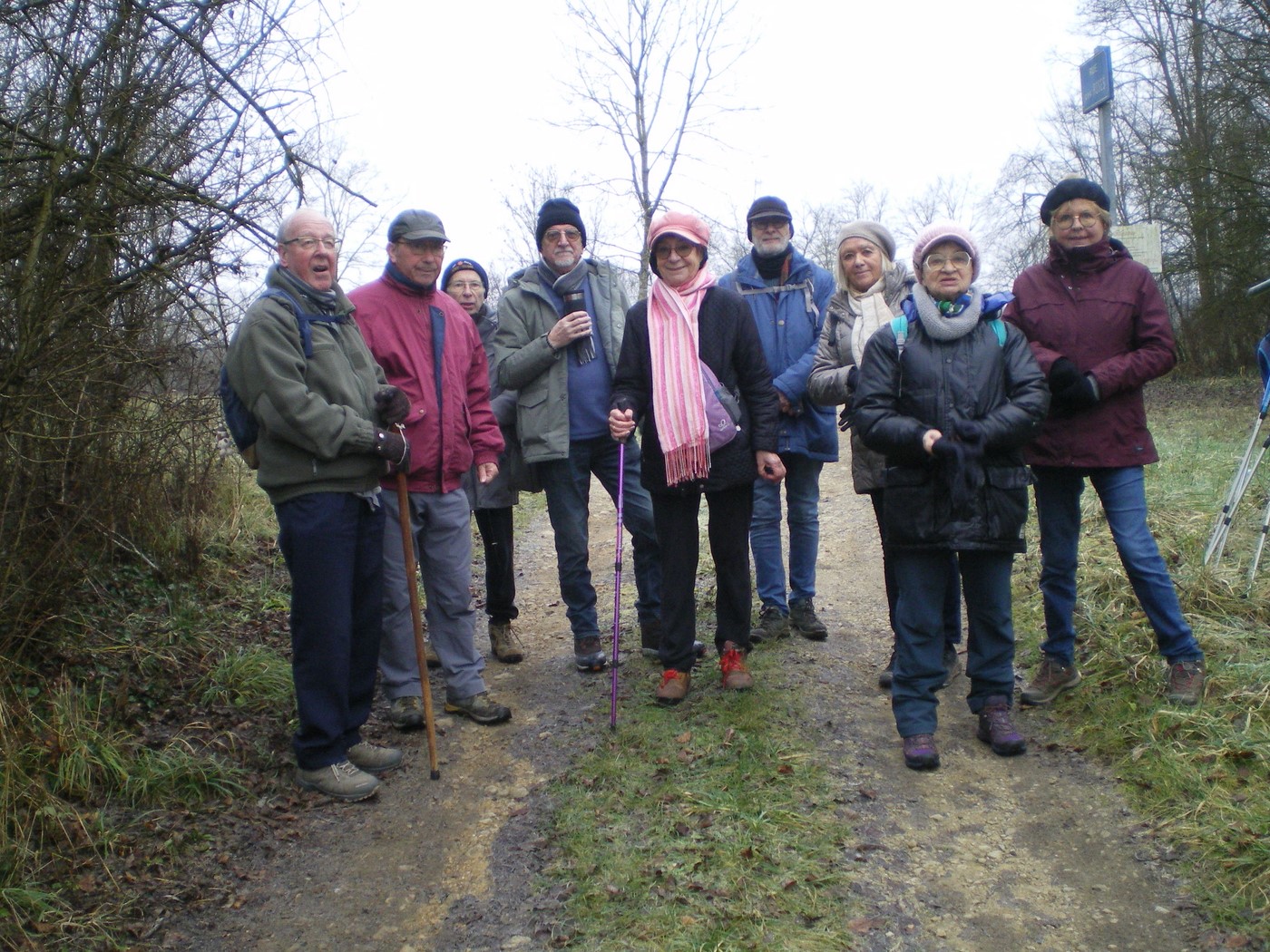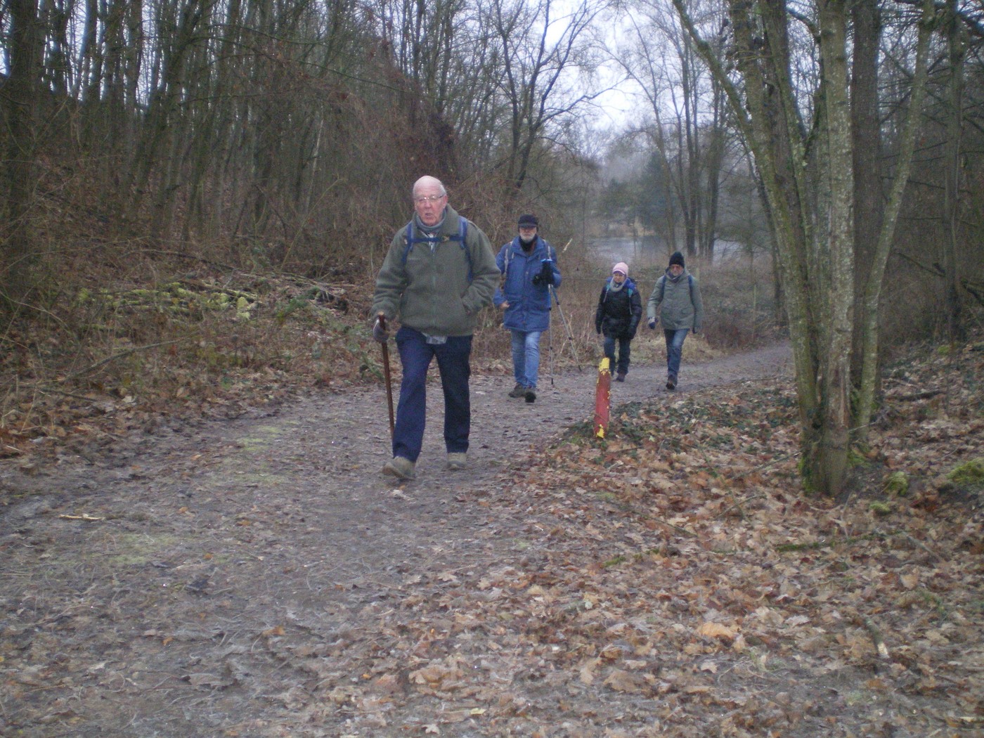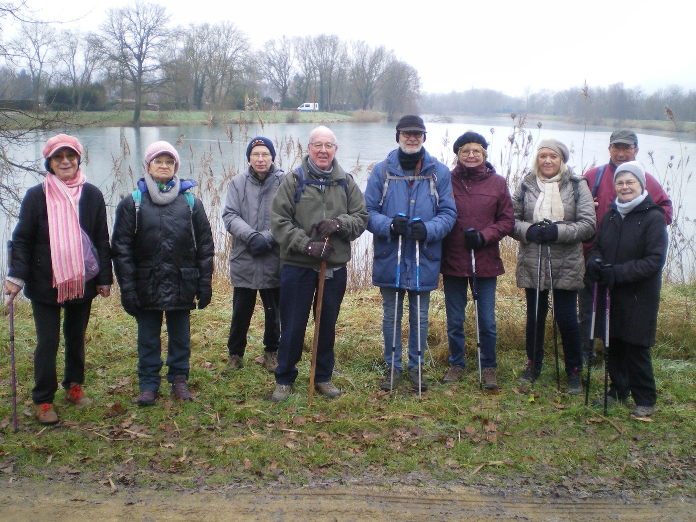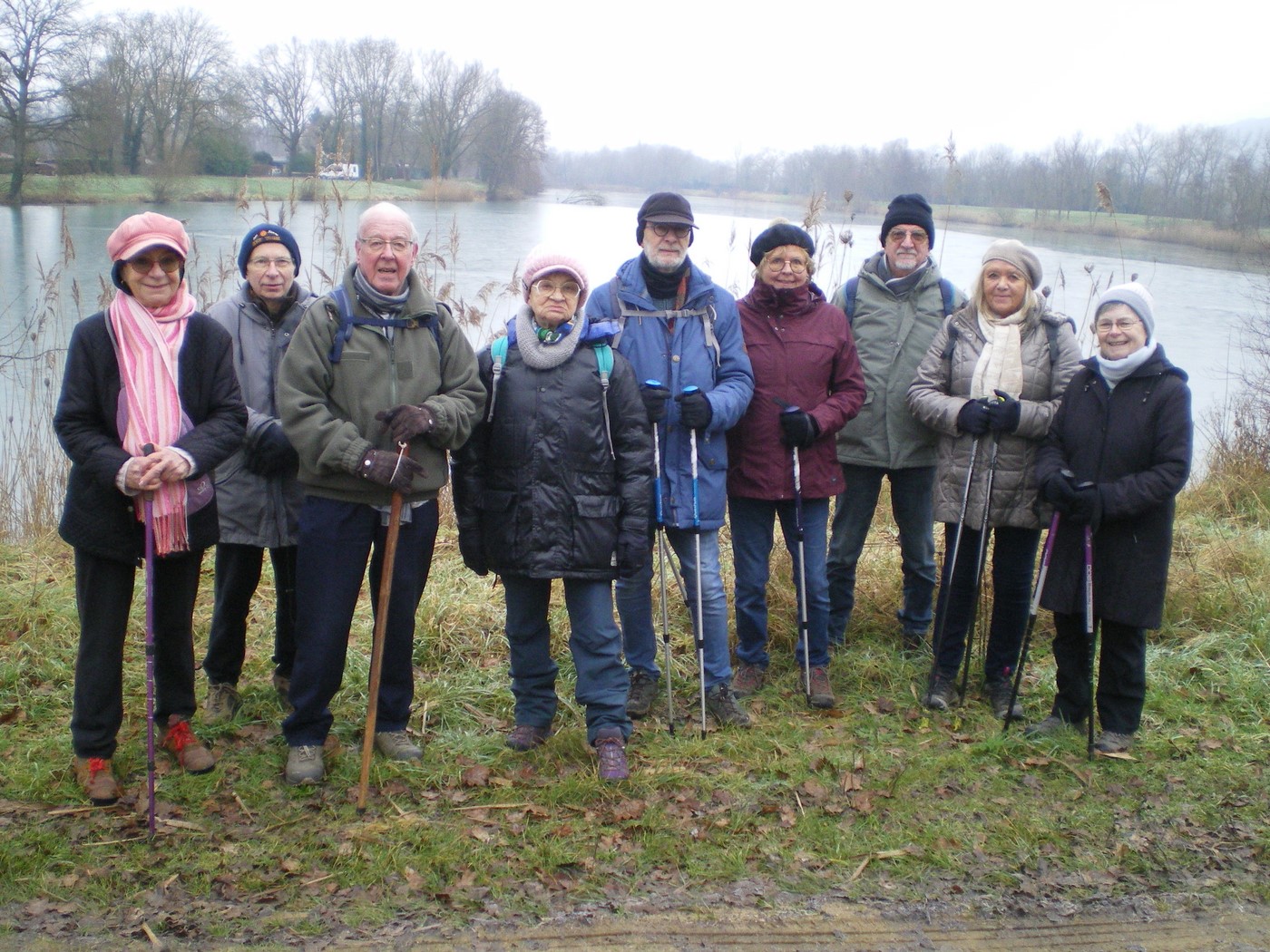Chouette randonnée au milieu des étangs d’outre Moselle encore délaissés par les propriétaires des chalets environnants . Cependant quelques canards et cygnes profitaient d’une eau peu gelée pour se dégourdir , mais c’est bien notre groupe qui a fourni les plus gros efforts .