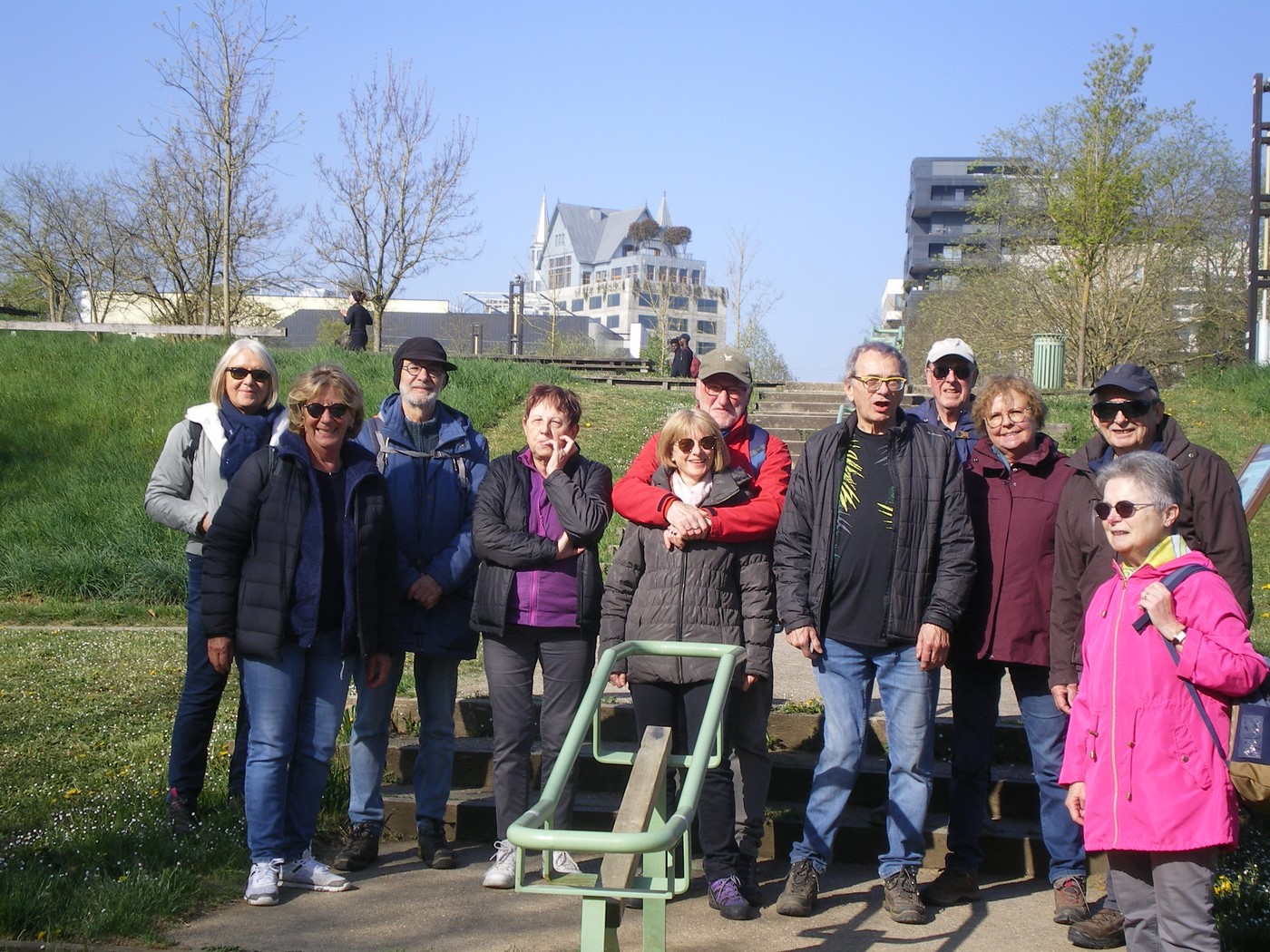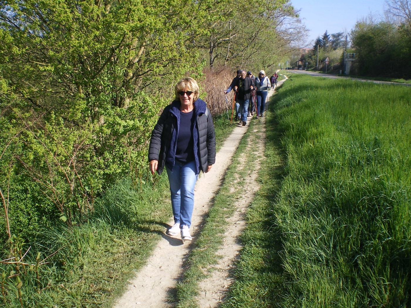 Belle participation pour la découverte de nouveaux passages sur les bords de Seille même si certains hectomètres ont paru longs sous le soleil qui a vite fait disparaitre la fraicheur du matin . Beau coup d’œil sur la maison Heller .