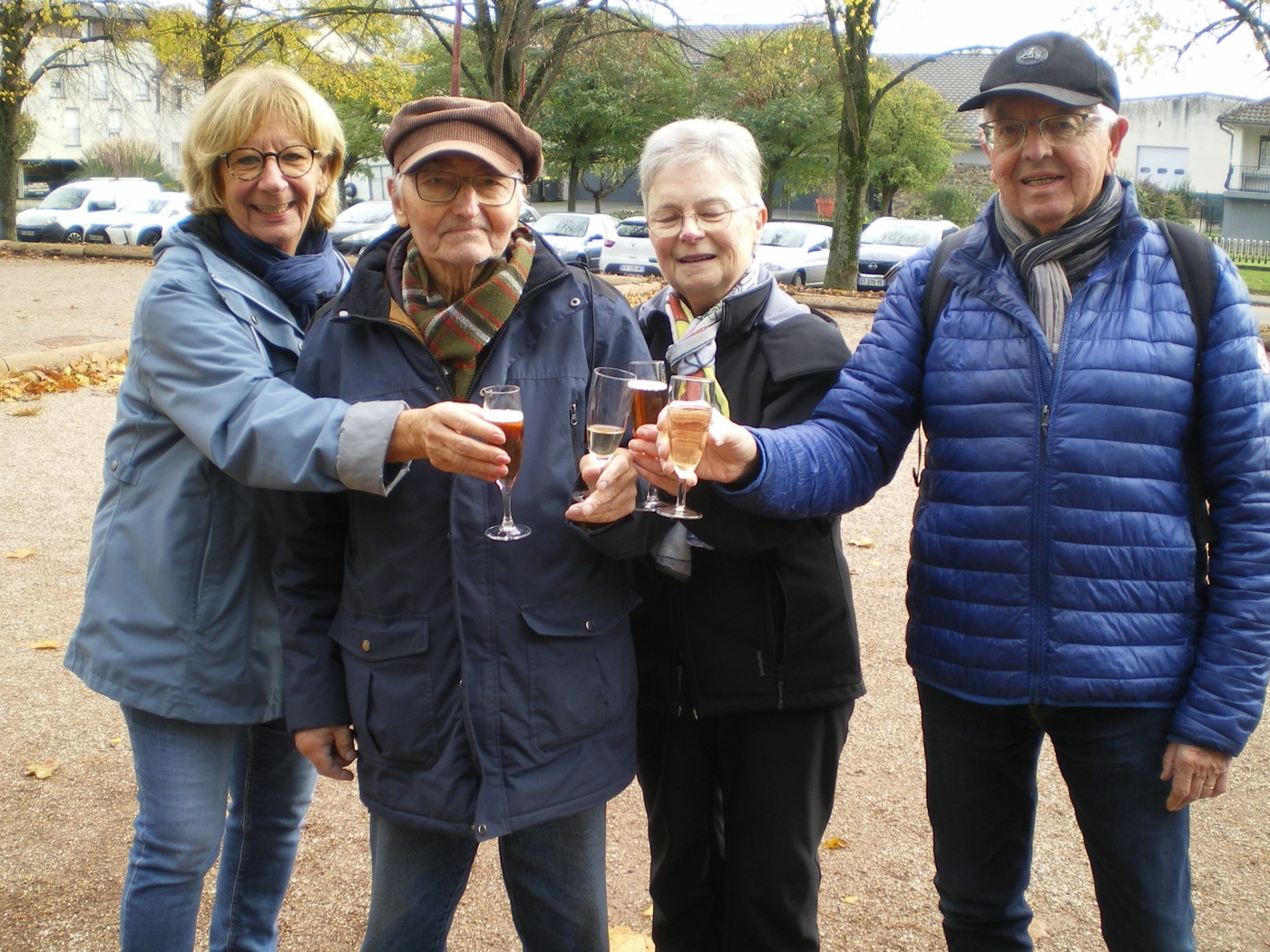 Nous étions 21 en ce jour d’Halloween à arpenter les sentiers du bord de Seille à la recherche des friandises espérées , bien guidés par 2 jumelles expérimentées . Finalement grâce aux honorés du jour Claude notre doyen , Gérard , Agnès et Martine nous avons été comblés de réconfort bien mérité après nos 9km400 . Merci à eux .