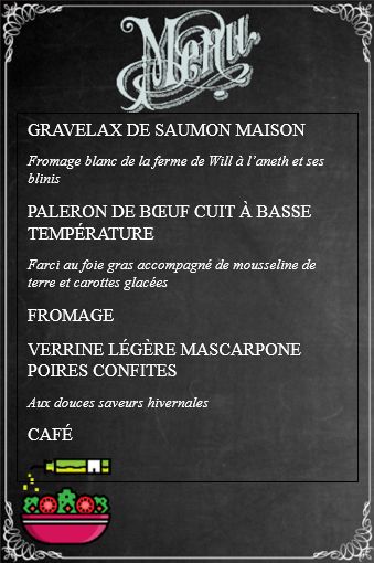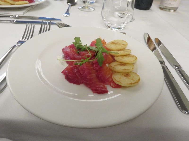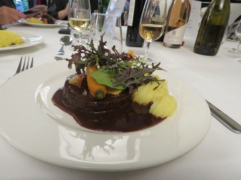 Après l'apéro au champagne et ses amuses bouche, place au repas savoureux accompagné de ses vins.
