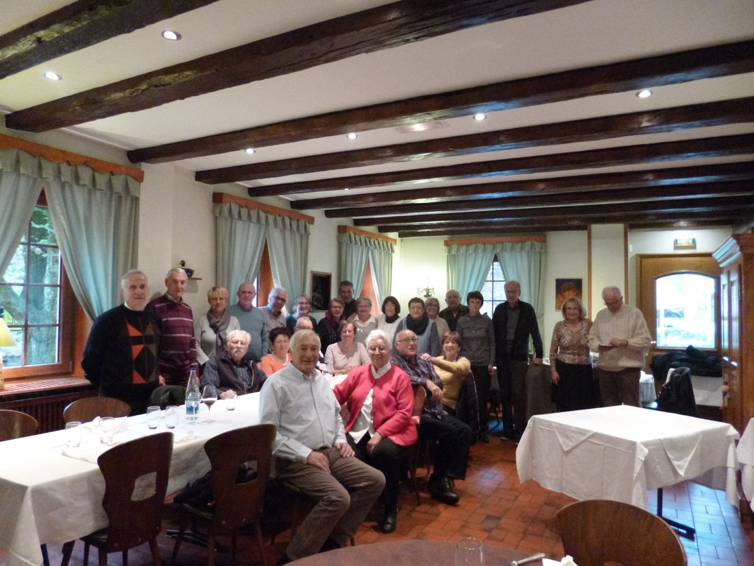 C'est dans le cadre du Restaurant à l'Aigle d'Or à Rimbach près Guebwiller que 26 convives se sont retrouvés le 17 novembre. Jean-Claude COUPE, Délégué Régional nous a fait l'amitié de s'associer à ce moment festif, accompagné par son épouse Arlette. L'excellent repas servi a comblé tous les gastronomes et tout le monde a apprécié l'ambiance chaleureuse et sympathique qui régnait tout au long de l'après-midi. Hélas, toutes les bonnes choses ayant une fin, c'est aux alentours de 16 Heures et ravis du bon moment passés ensembles que nos alertes retraités se sont quittés en se donnant rendez-vous au printemps 2018.