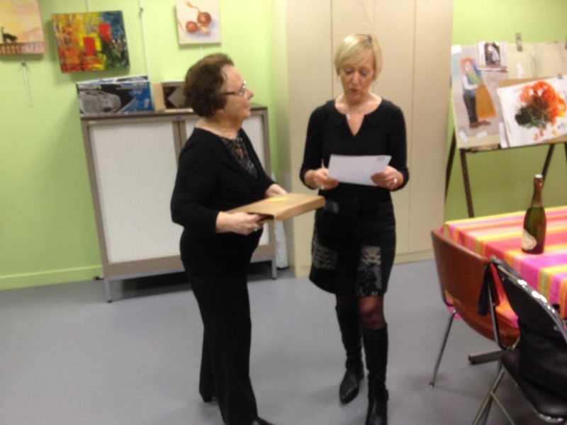 La remise d'un prix des beaux arts ASCBNPP par la présidente locale Paulette Ledig à notre adhérente Jostte Bord